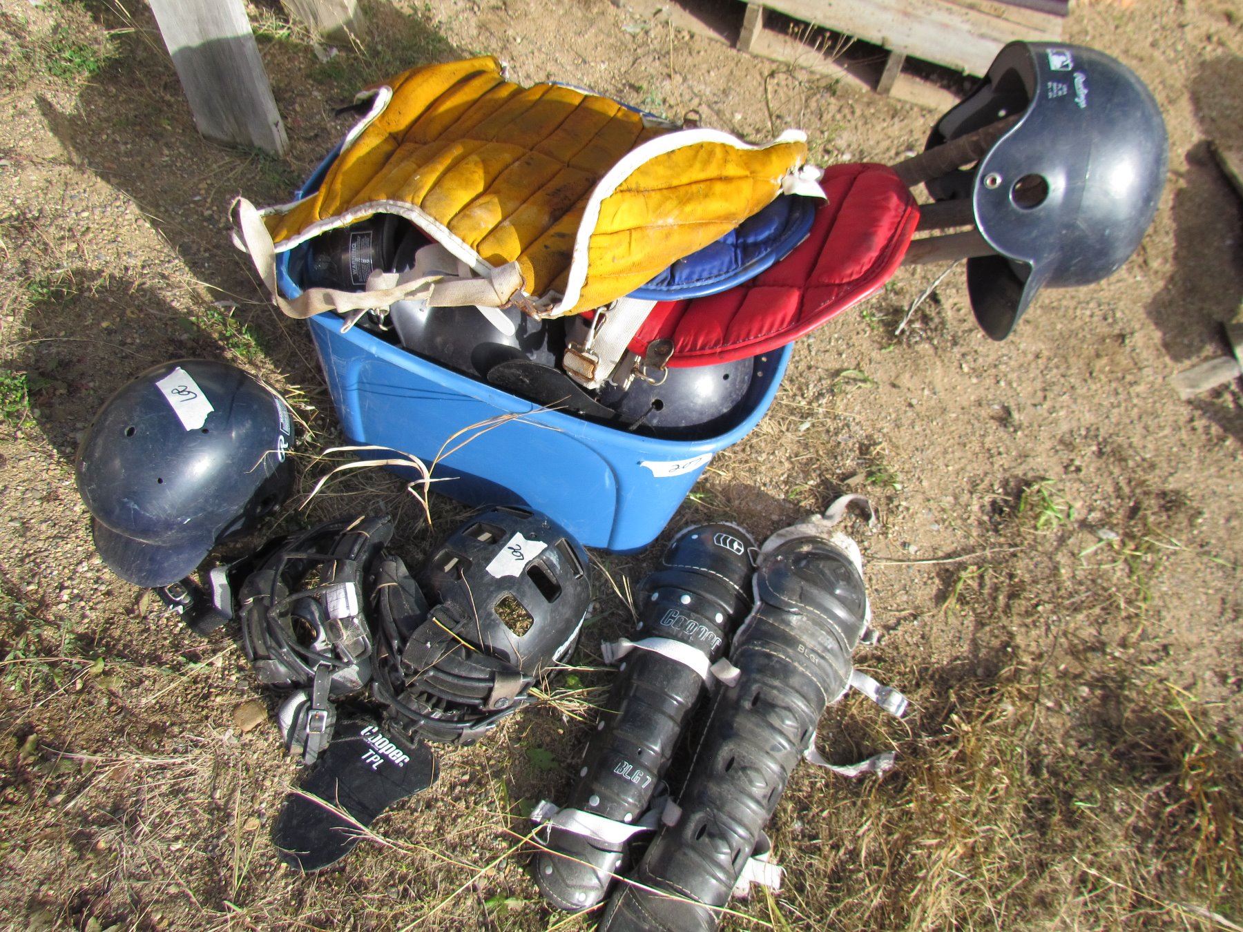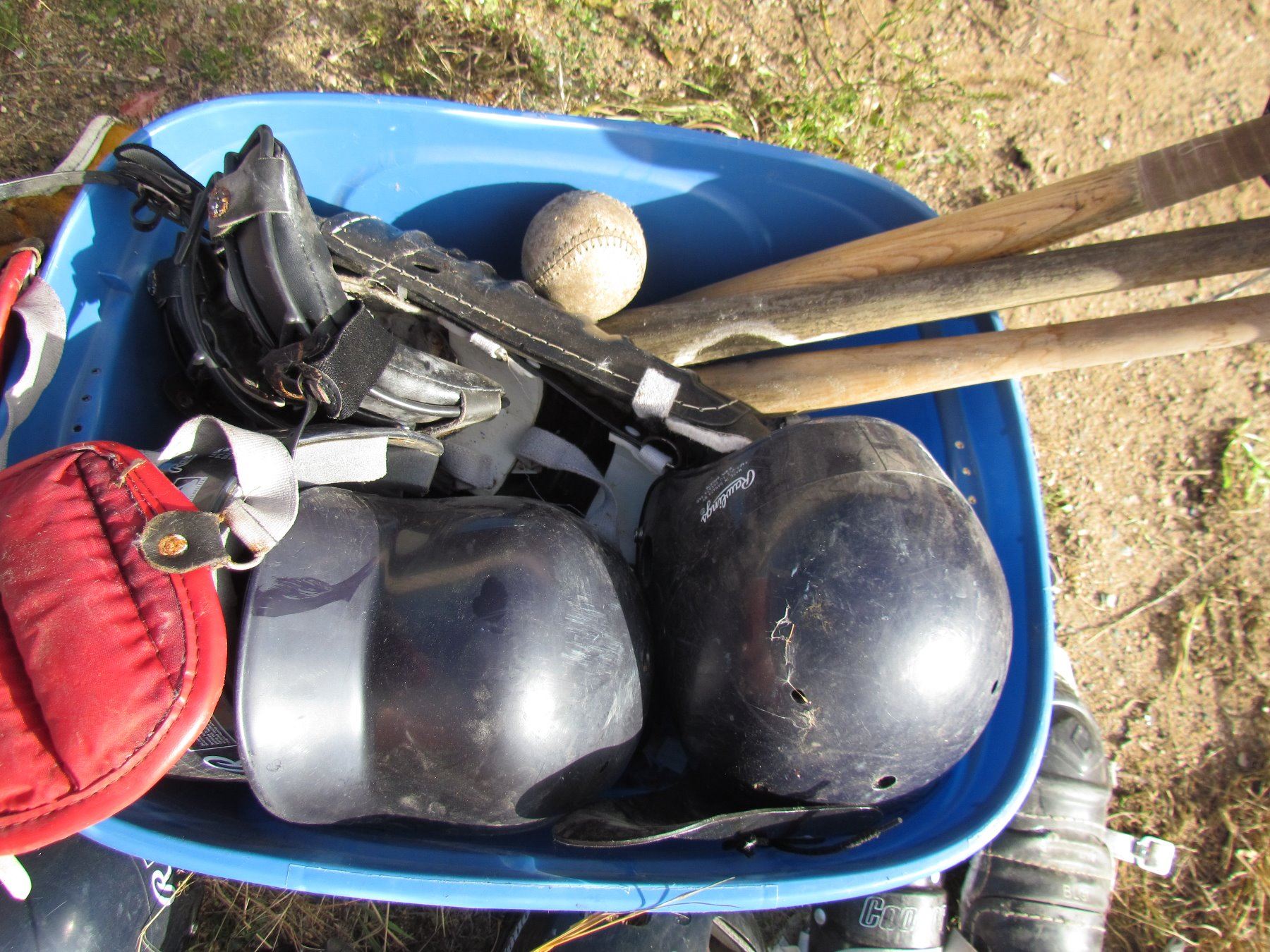 LOT OF BASEBALL HELMETS, BATS, BALLS, GLOVES, ETC…