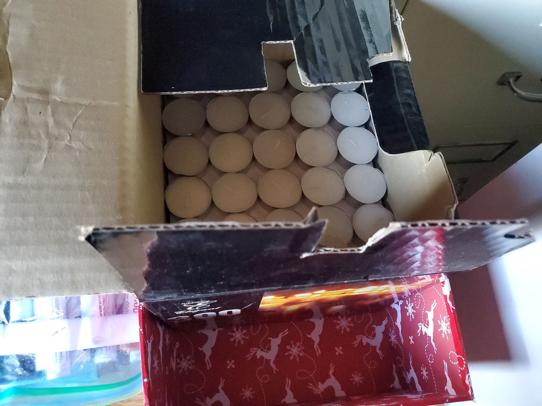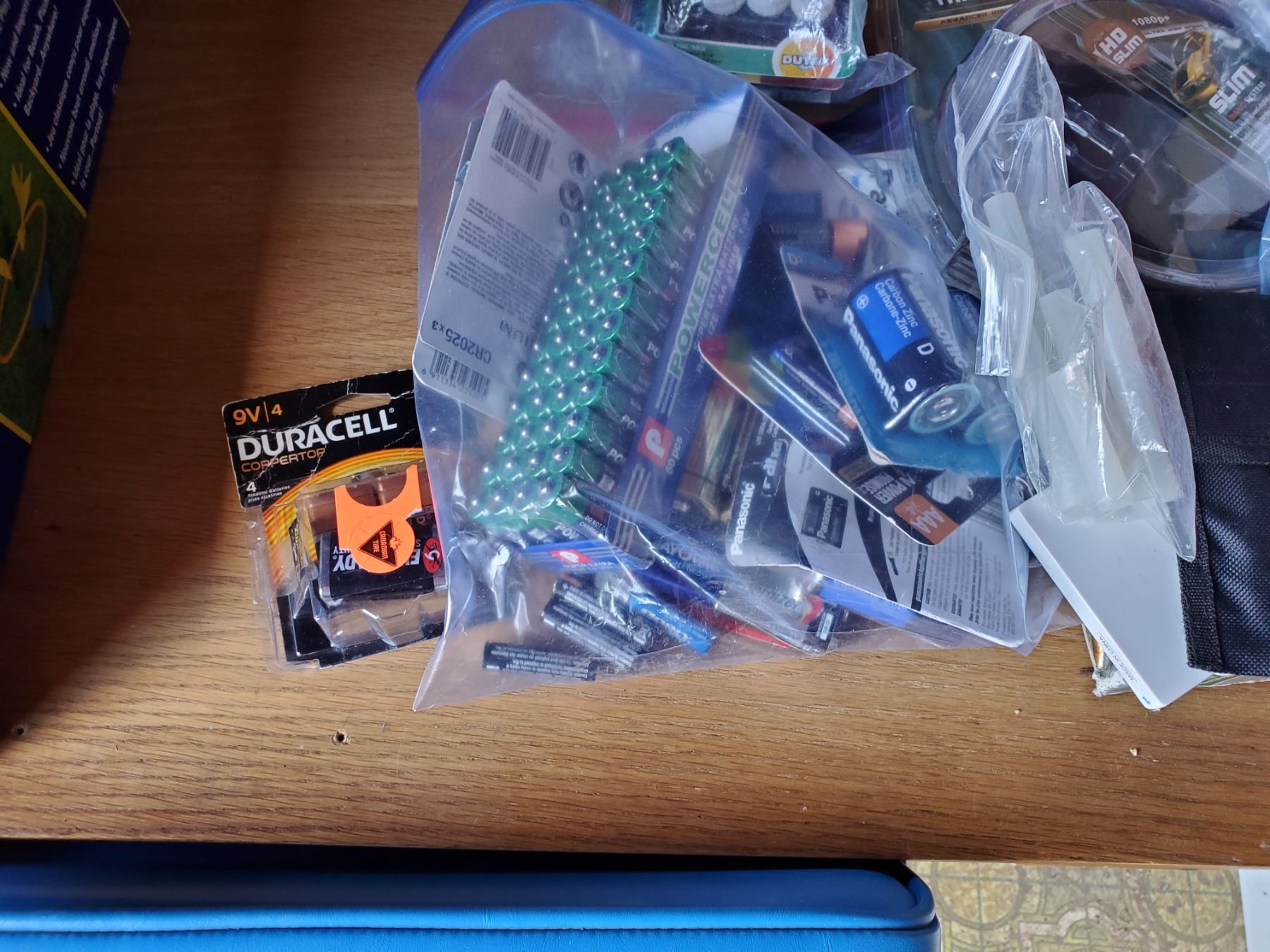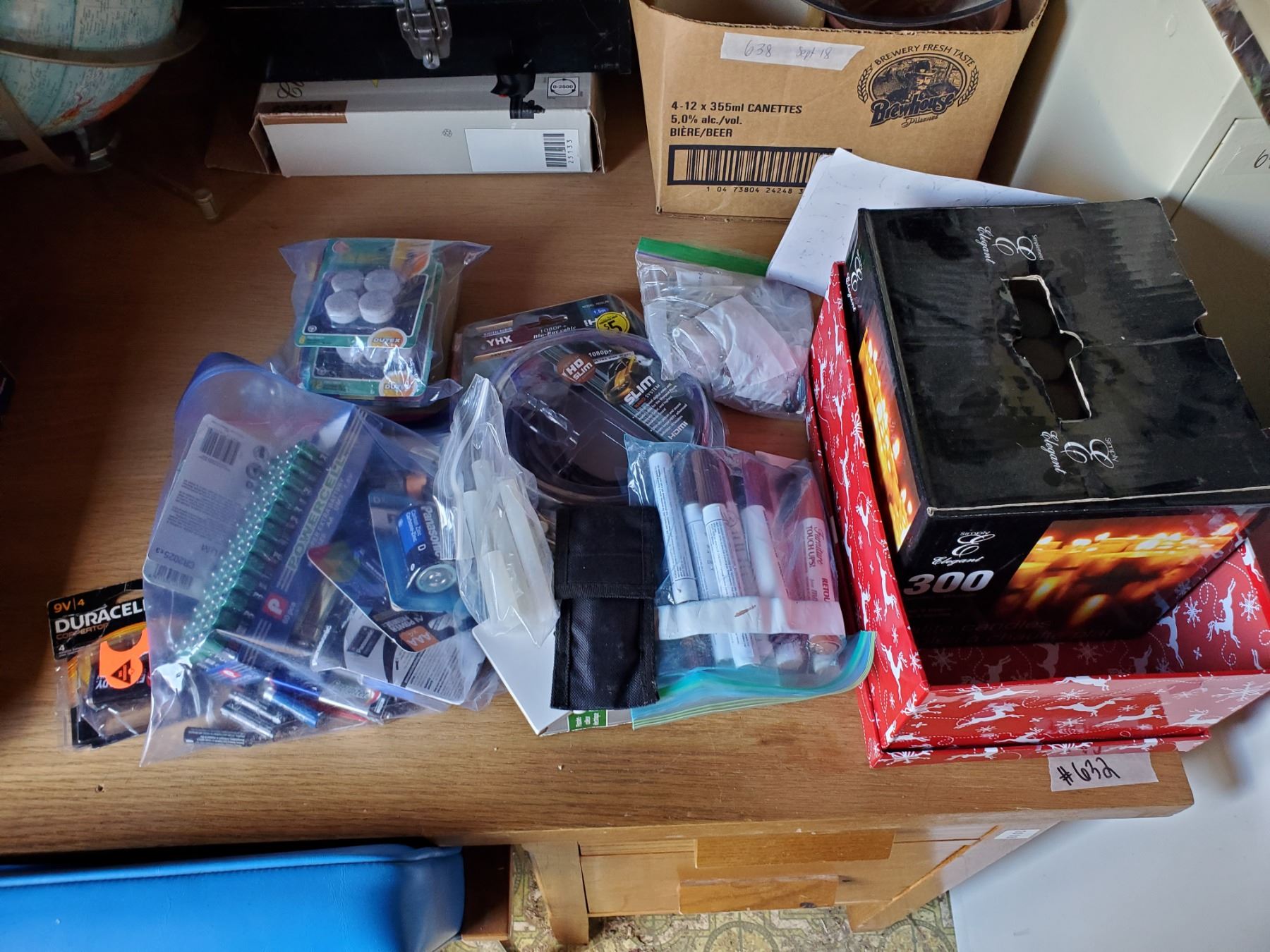 LOT OF BATTERIES, 150 TEALIGHTS, GLUE GUN, MISC HOUSEHOLD