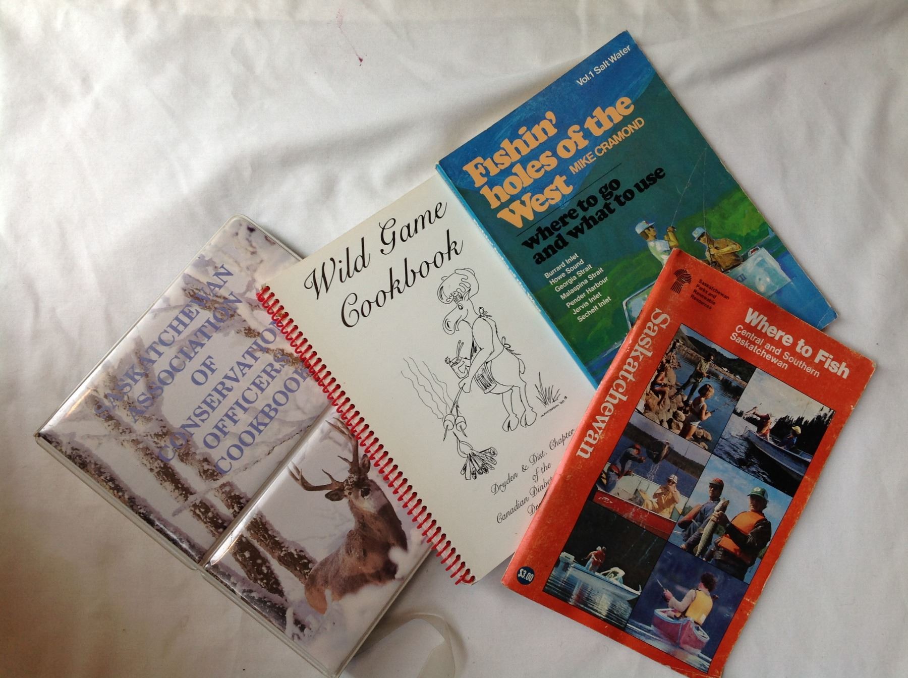 LOT OF BOOKS. 2 WILD GAME COOK BOOKS/ 2 WHERE TO FISH BOOKS