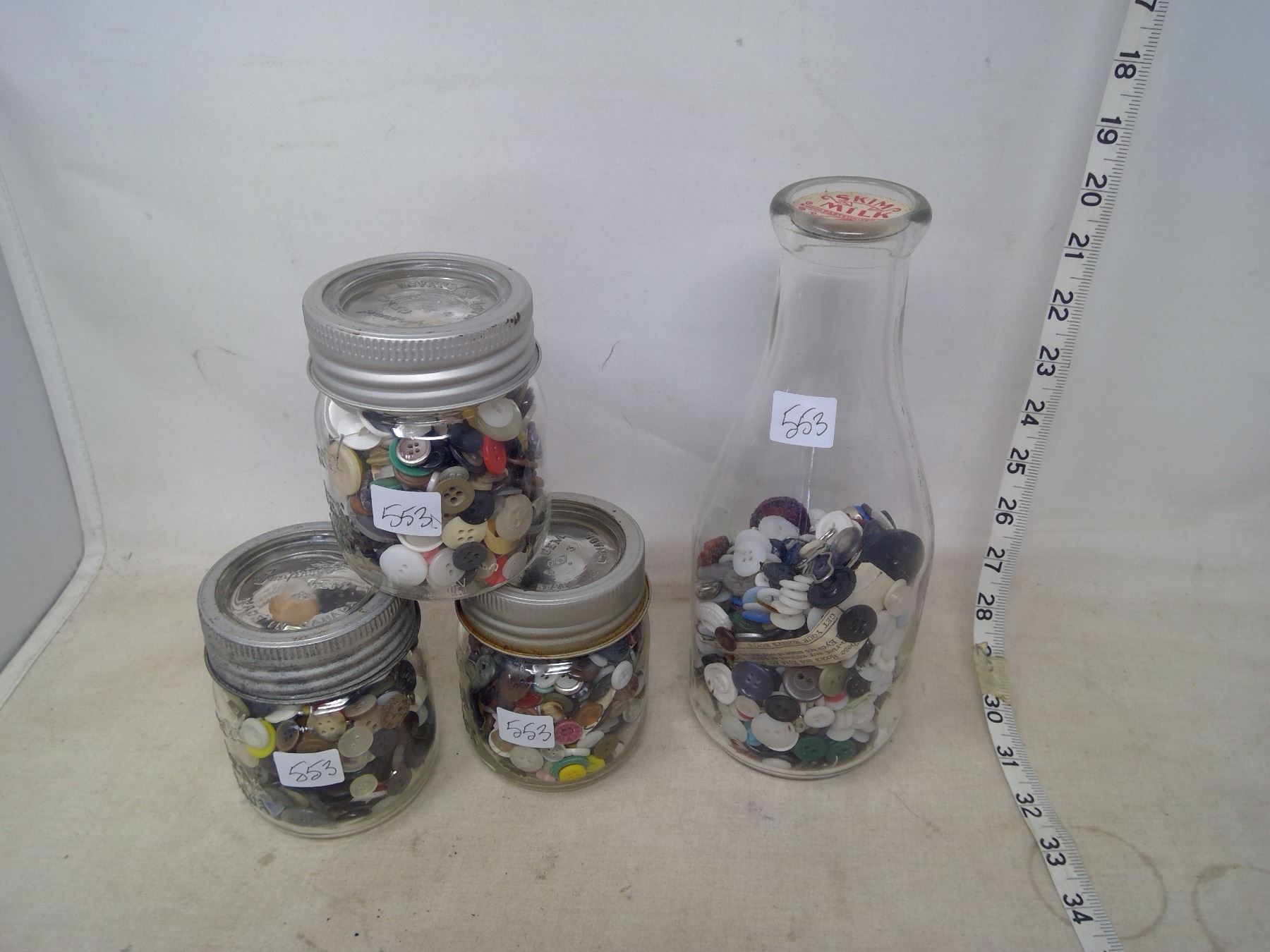 LOT OF BUTTONS - MILK BOTTLE - IMPROVED GEM JARS