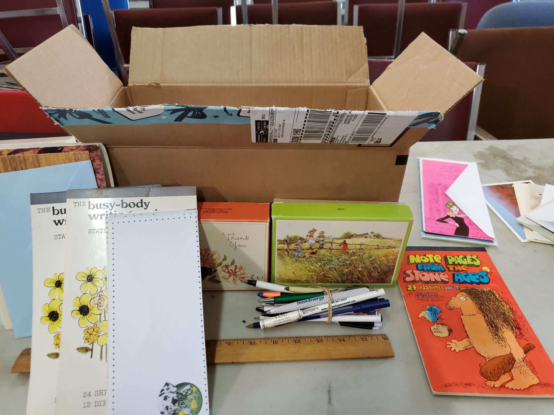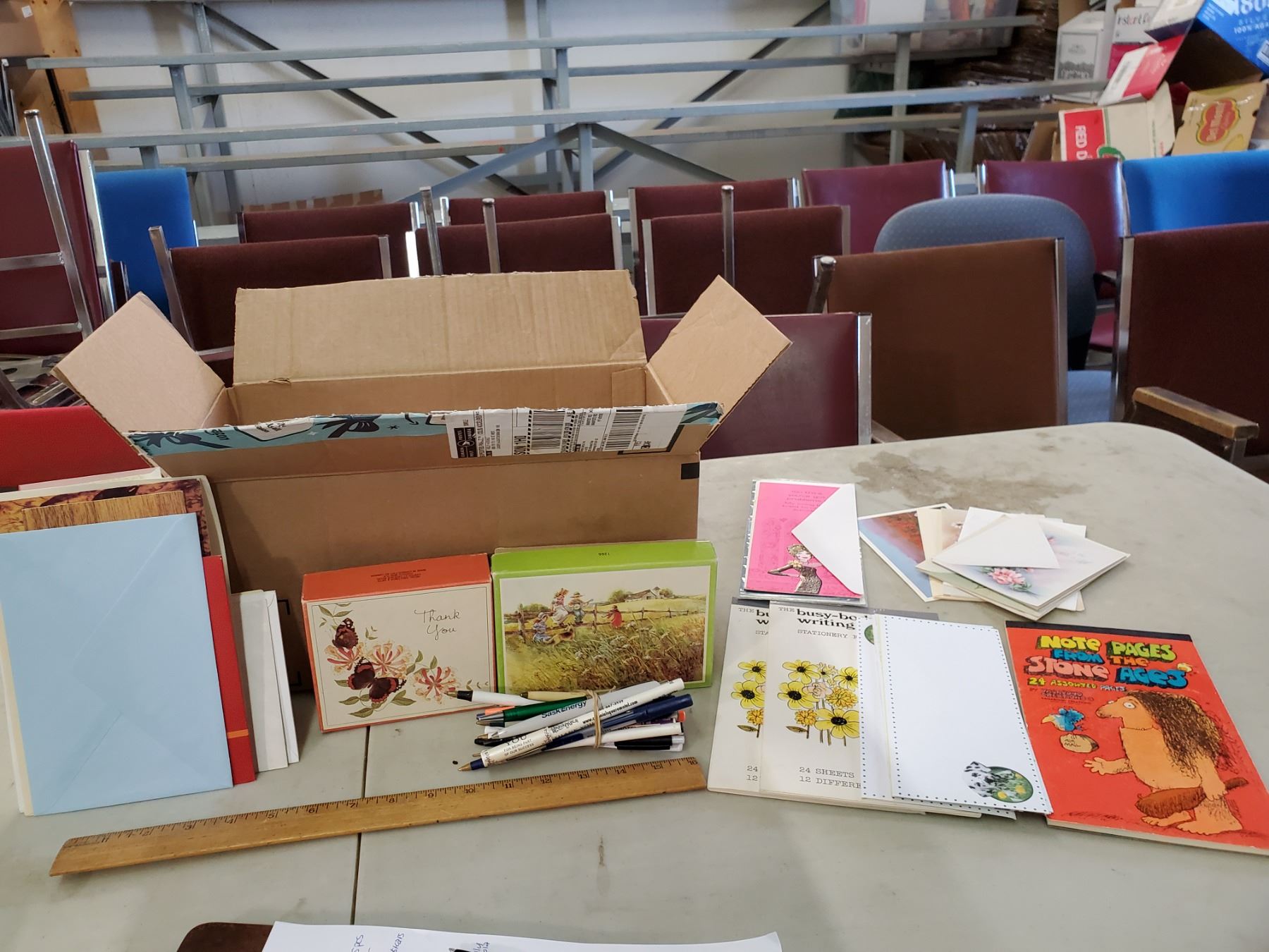 LOT OF CARDS, STATIONARY, POSTCARDS, ENVELOPES, PENS, ETC.