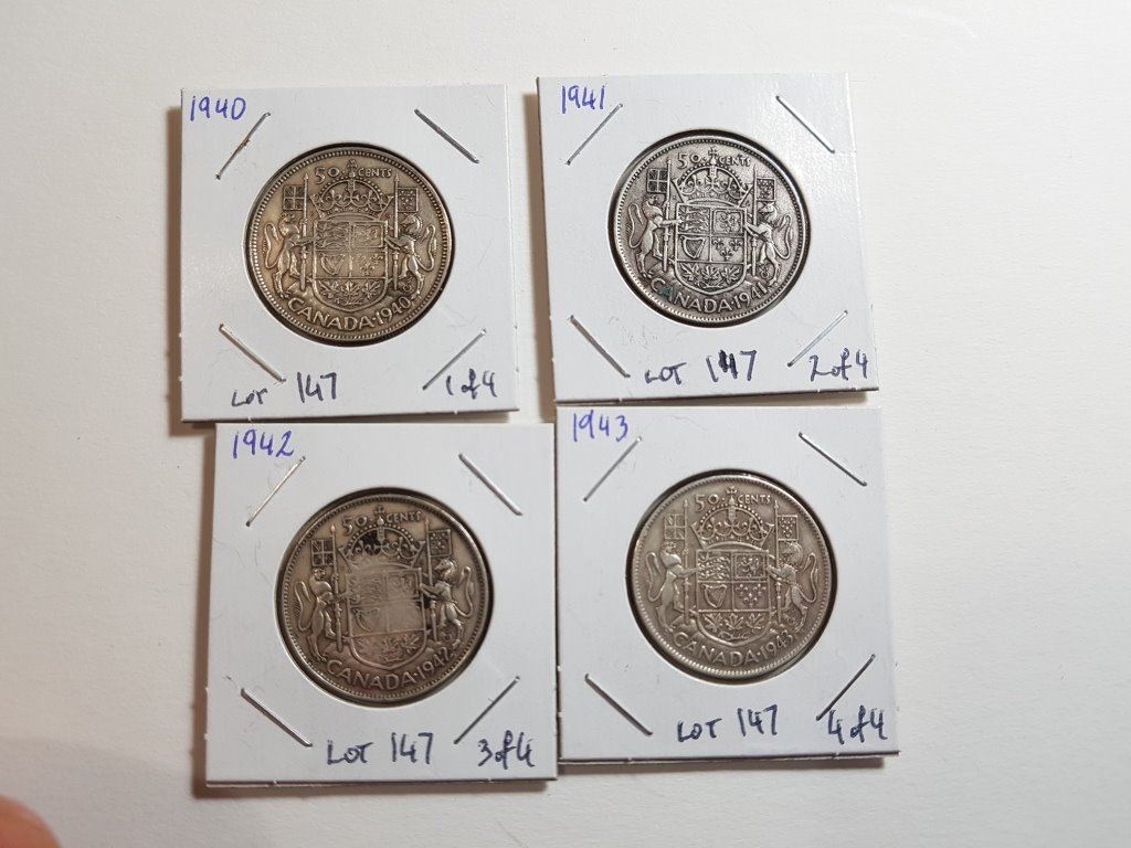 LOT OF CNDN SILVER 50 CENT PCS (1940, 41, 42, 43)