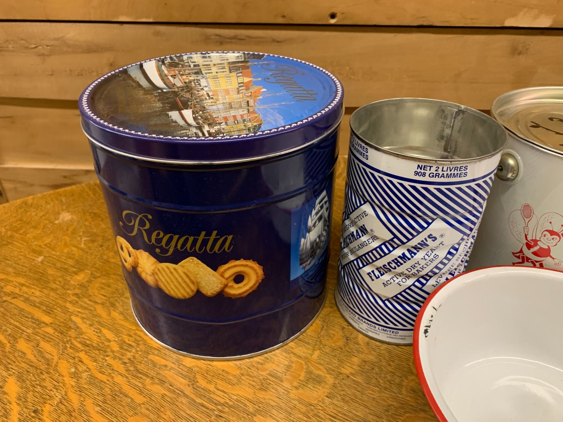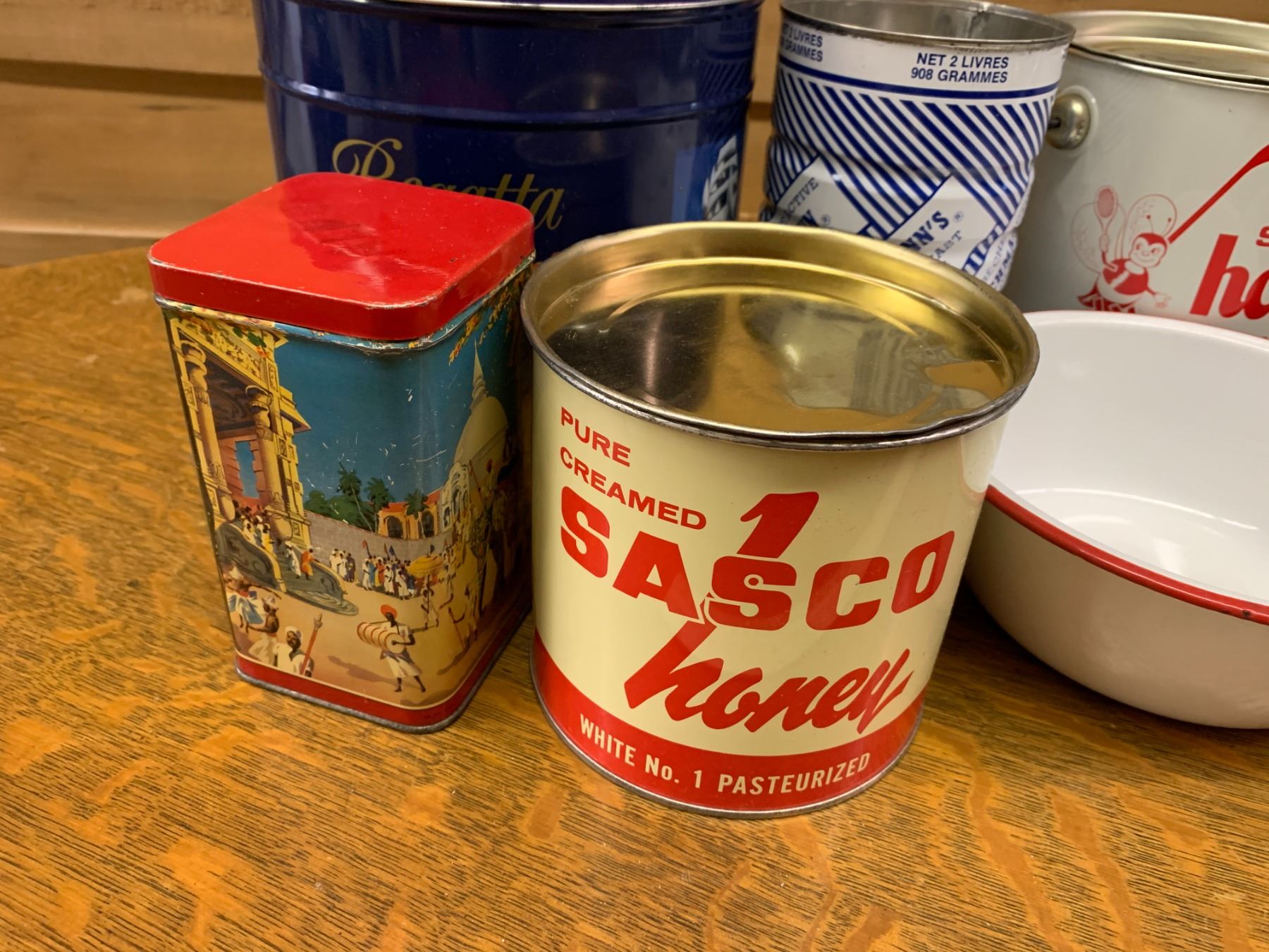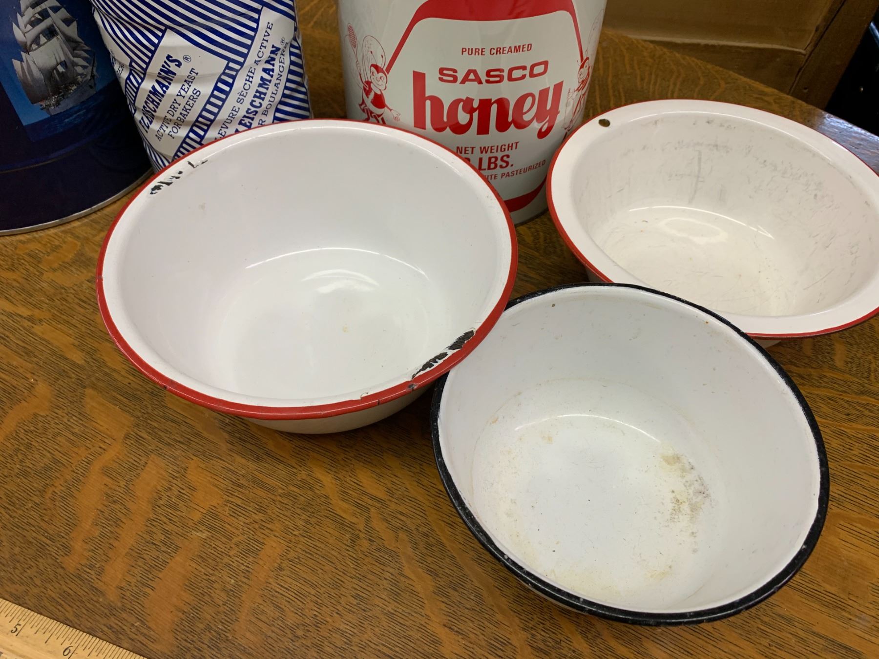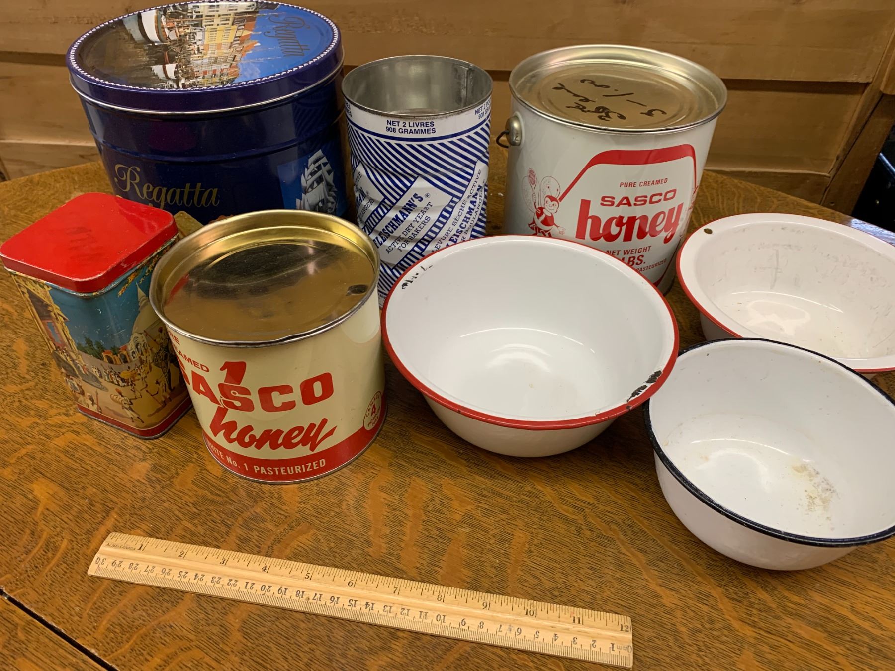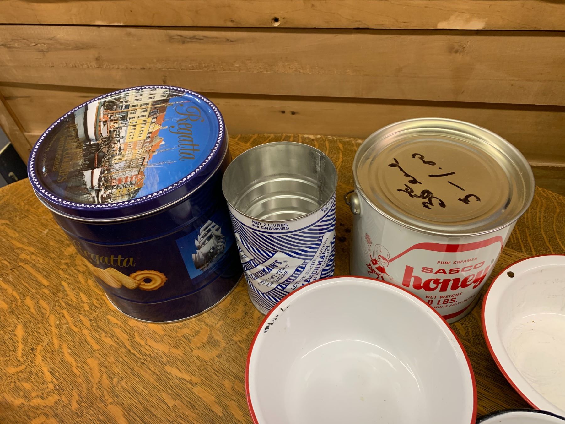 LOT OF ENAMEL BOWLS AND VINTAGE TINS