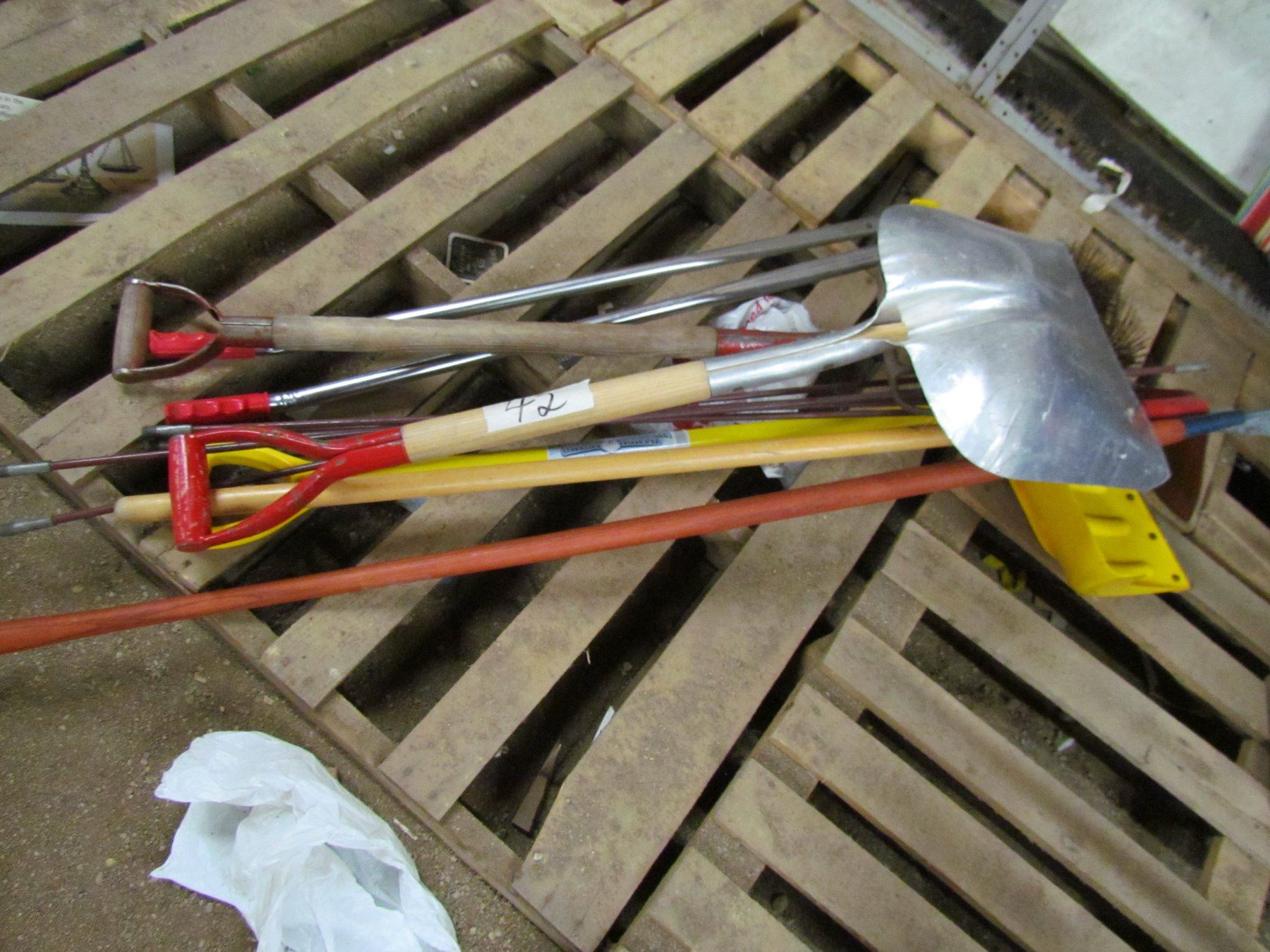 LOT OF GARDEN TOOLS (FORKS, HOES, SHOVELS, ETC…)