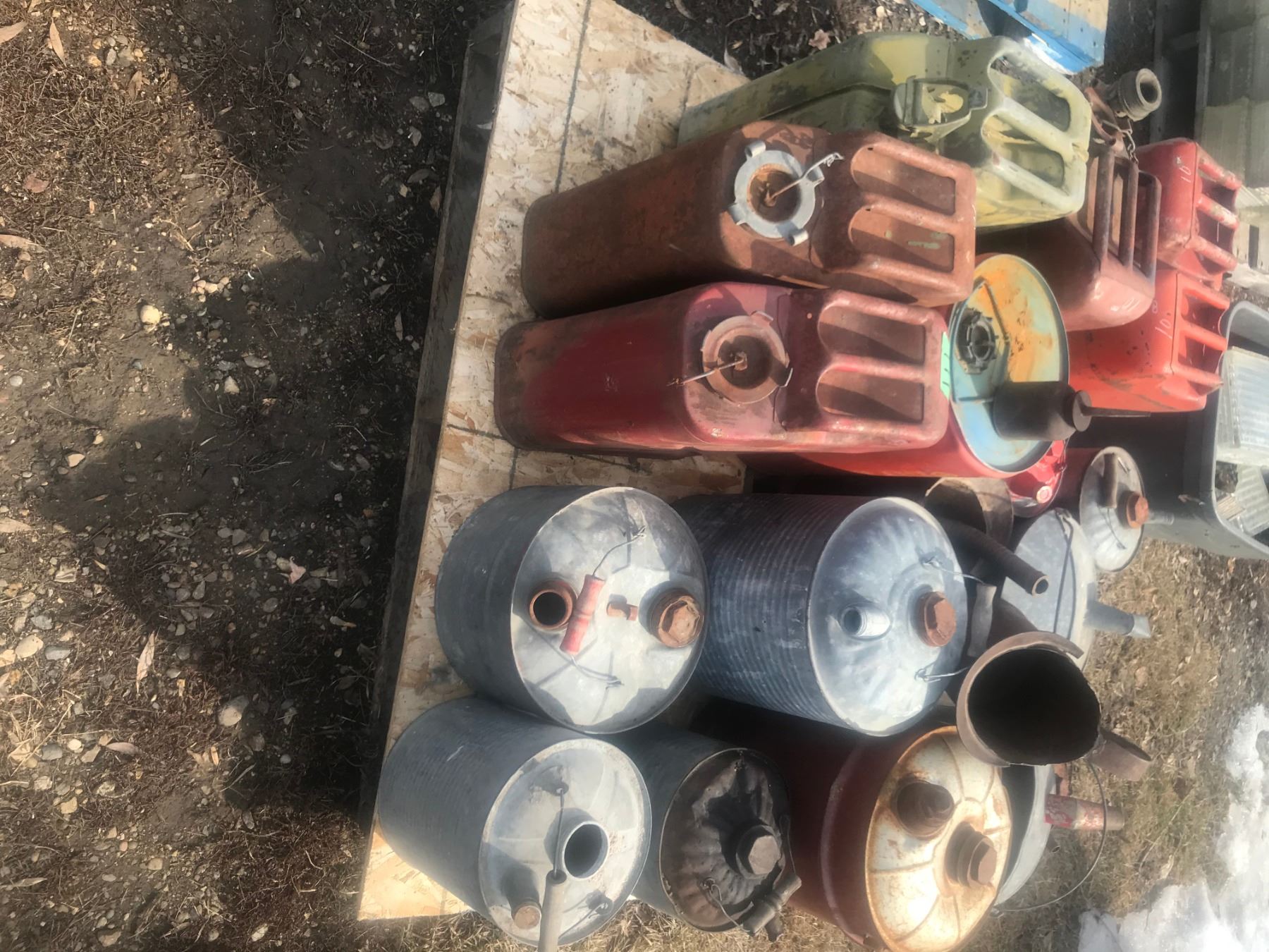LOT OF GAS CANS - ARMY, VINTAGE, ETC. (1 - 5 GALLON)