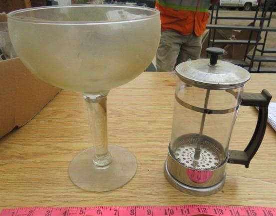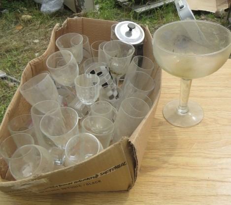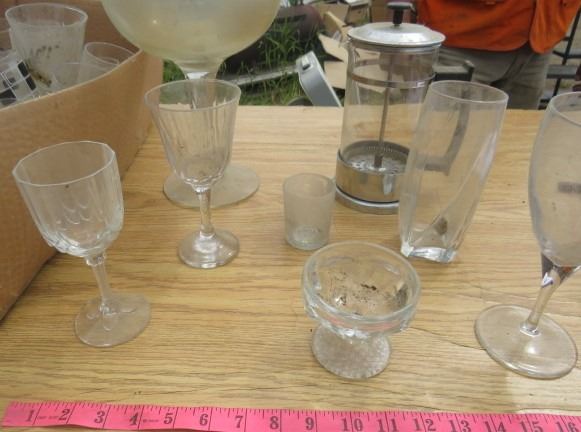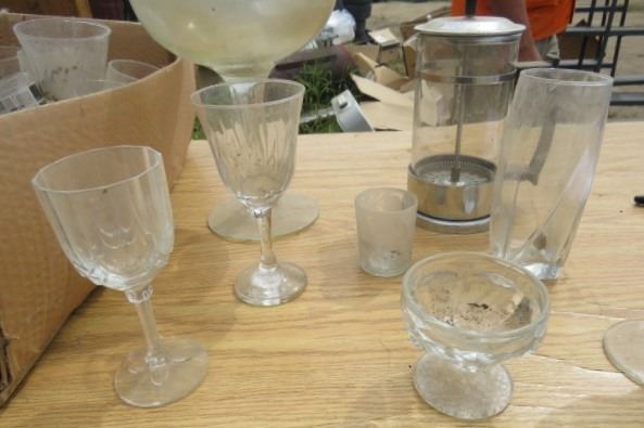 LOT OF GLASSES AND COFFEE PRESS (VARIOUS SIZES)