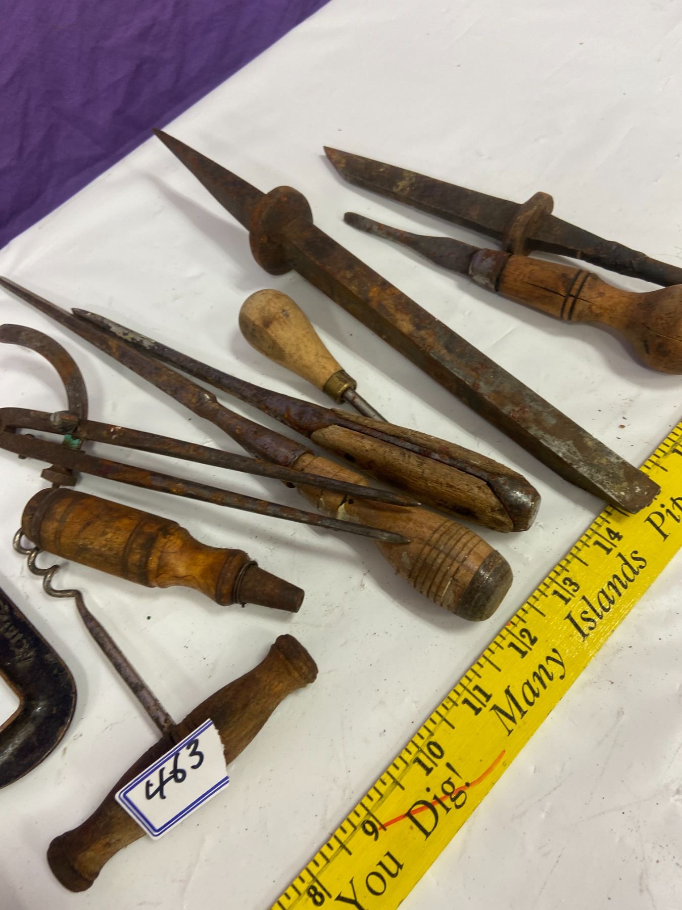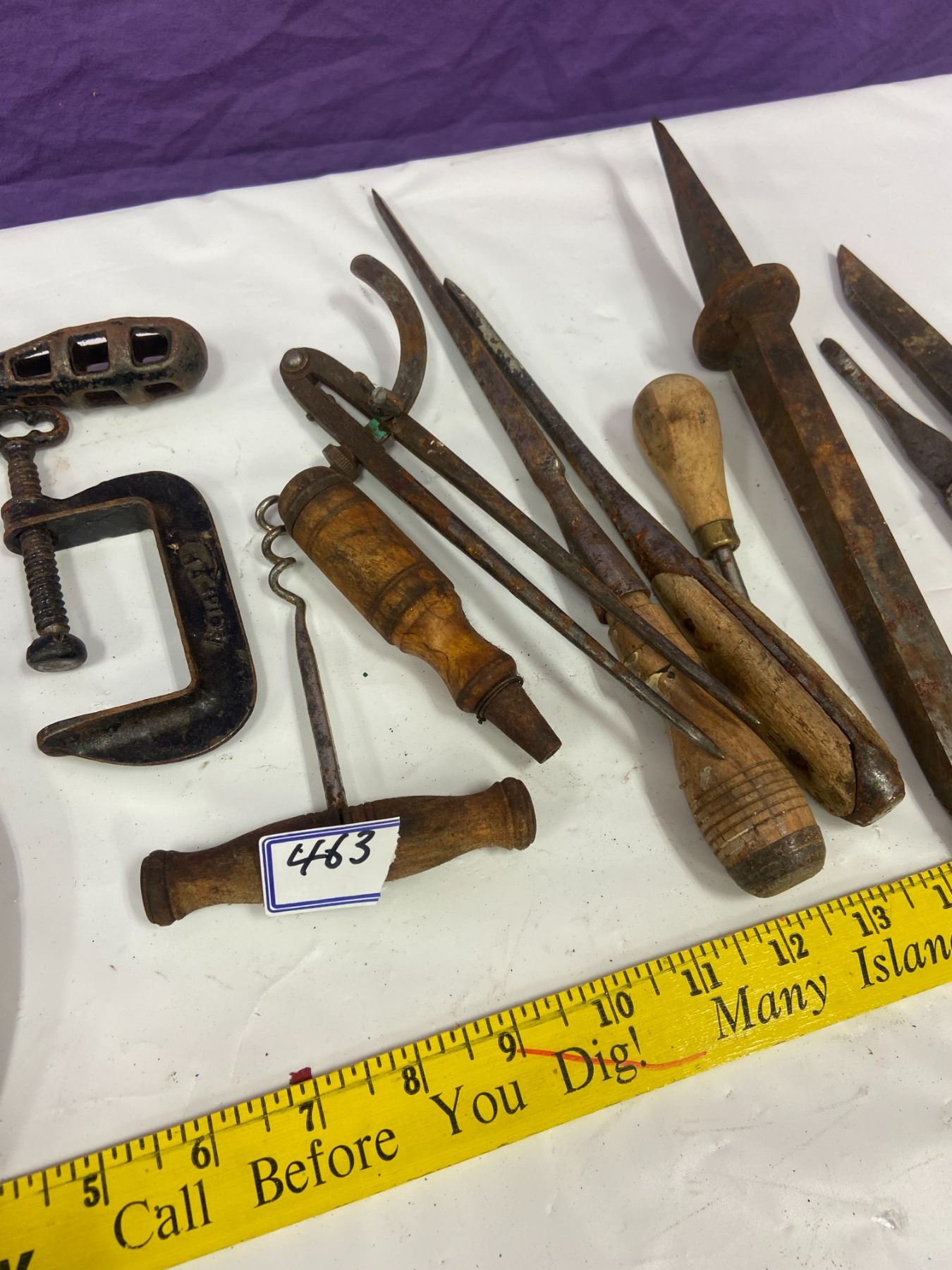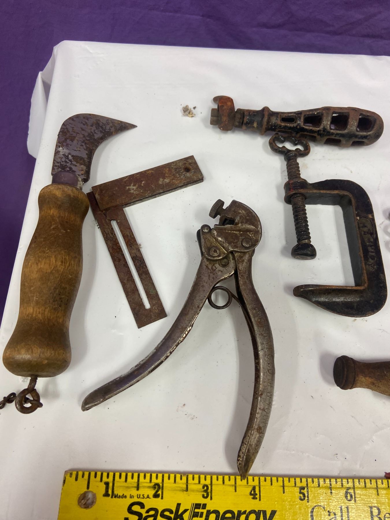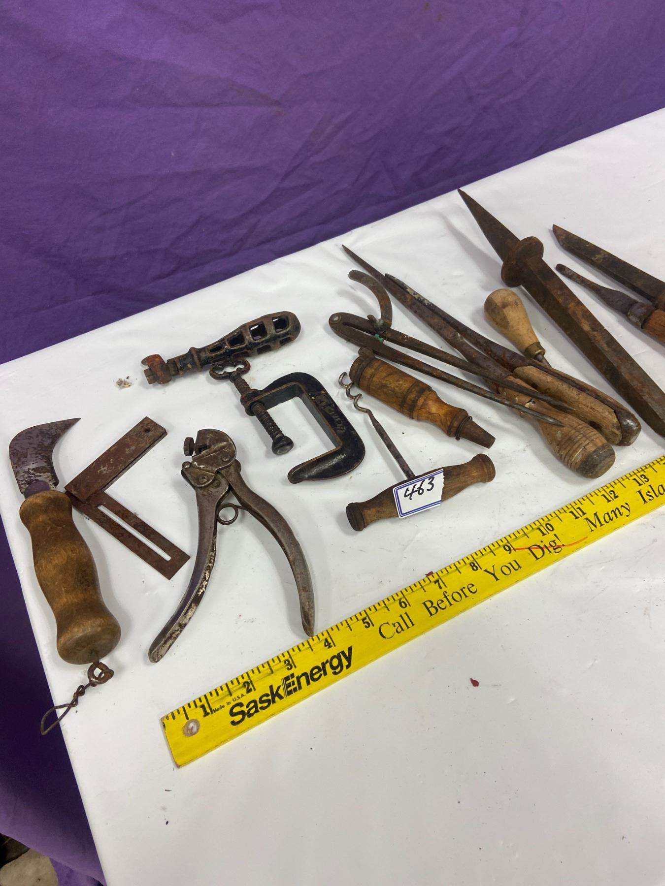 LOT OF HAND TOOLS- PRIMITIVE- ETC