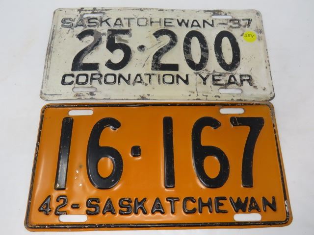 LOT OF LICENSE PLATES (1937 & 1942) *SASK.*