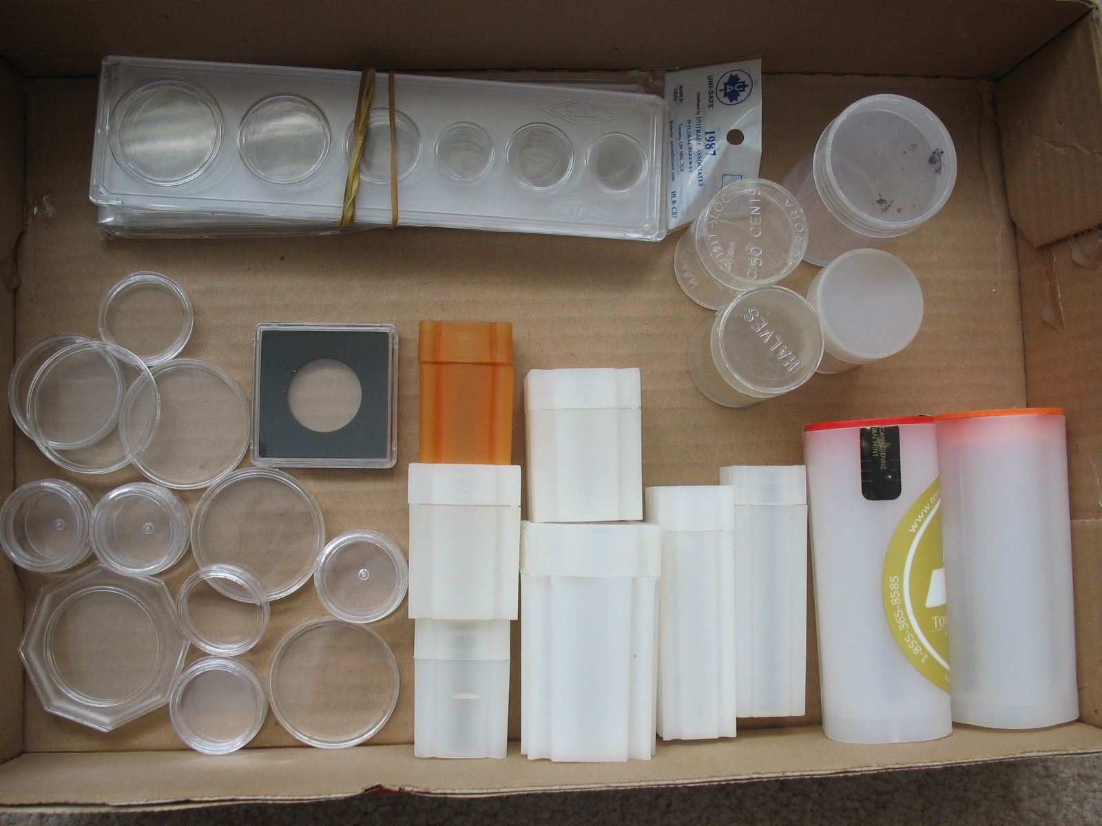 LOT OF MISC. COIN CAPSULES, COIN TUBES & HOLDERS