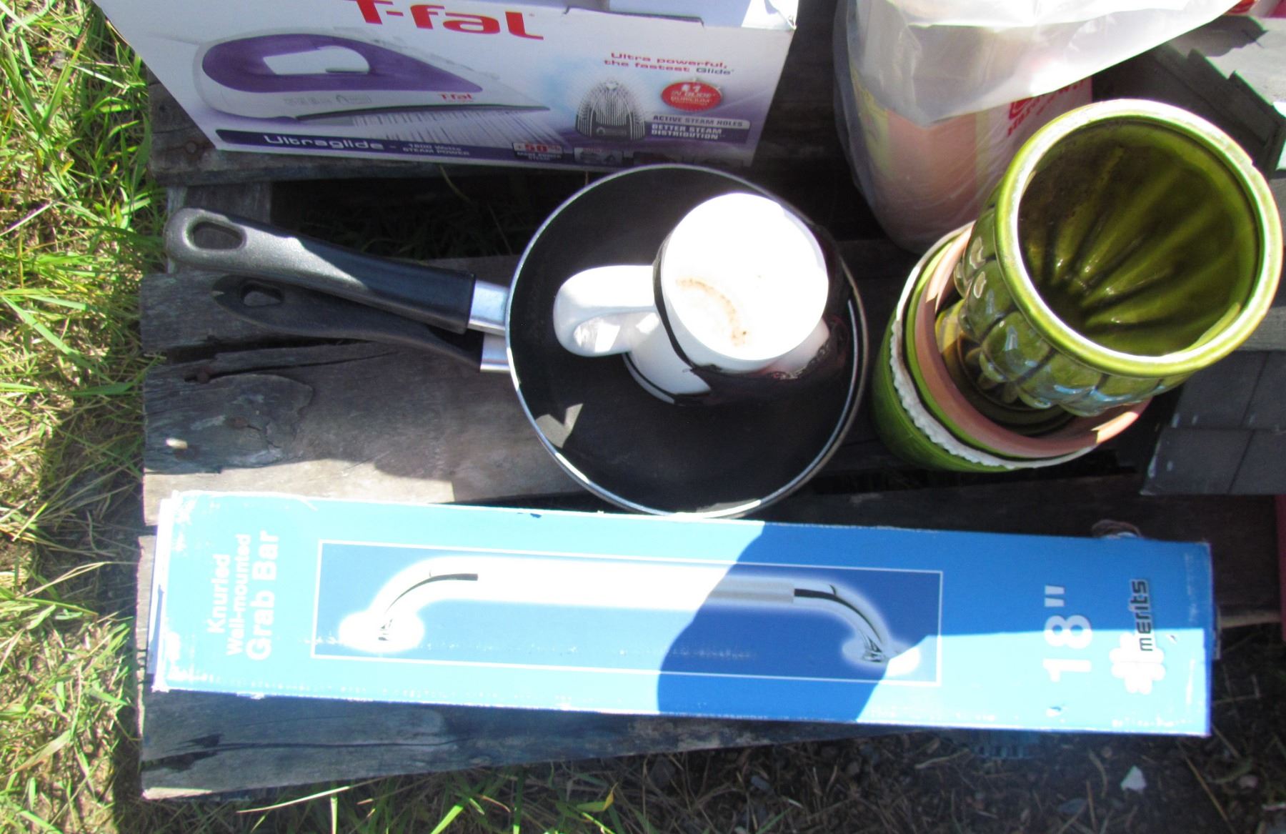 LOT OF MISC HOUSEWARES (2 X TOWEL RACKS, 2 X BIRDHOUSES, PLANTERS, LIGHT FIXTURE, VARIOUS LIGHT BULBS, ETC)