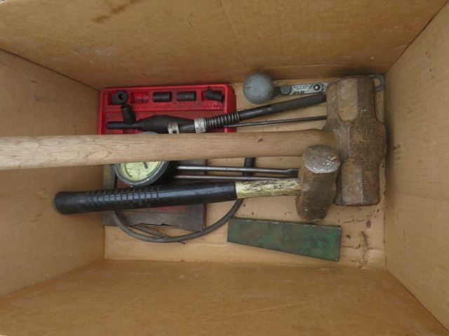 LOT OF MISC ITEMS (AIR FILTERS, WATER PUMP, SLEDGE HAMMERS, ETC)