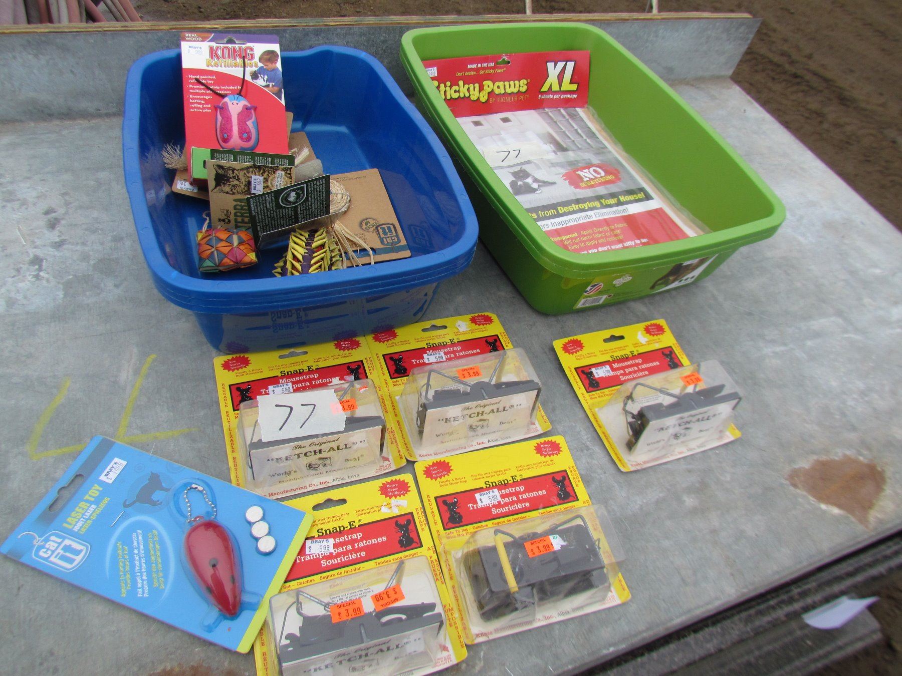 LOT OF MISC PET SUPPLIES (5 X CAT LITTER PANS, 5 X MOUSETRAPS, ETC) *NOS*