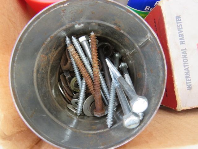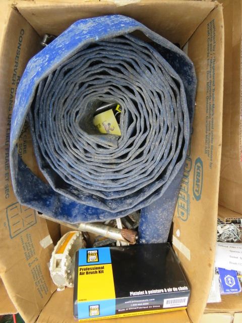 LOT OF MISC SHOP ITEMS (BOLTS, NUTS, SCREWS, AIRBRUSH KIT, CHAINS, ETC)