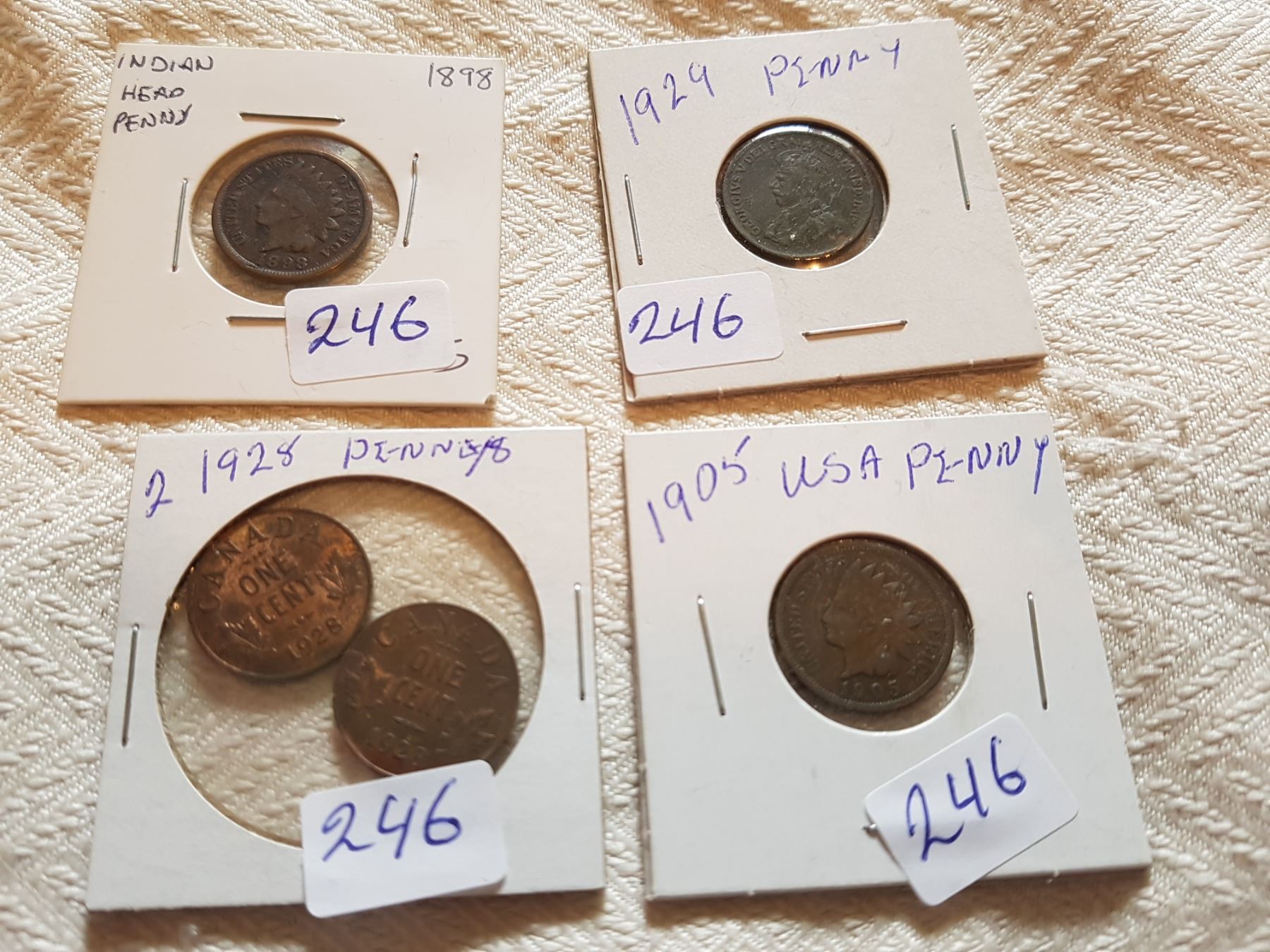 LOT OF PENNIES (2 X 1928 CANADIAN) *1 X 1929 CANADIAN* (1898 & 1905 USA)