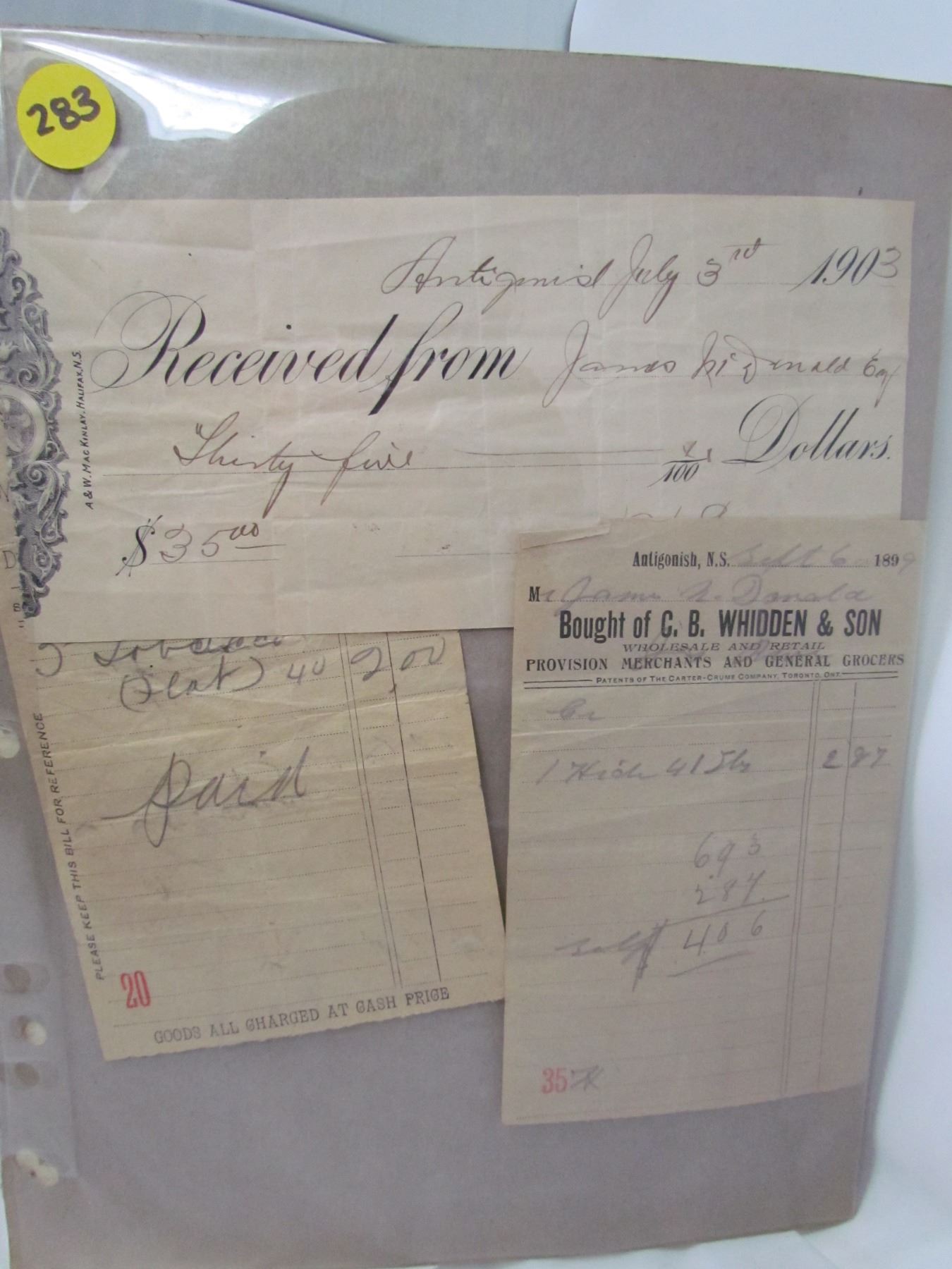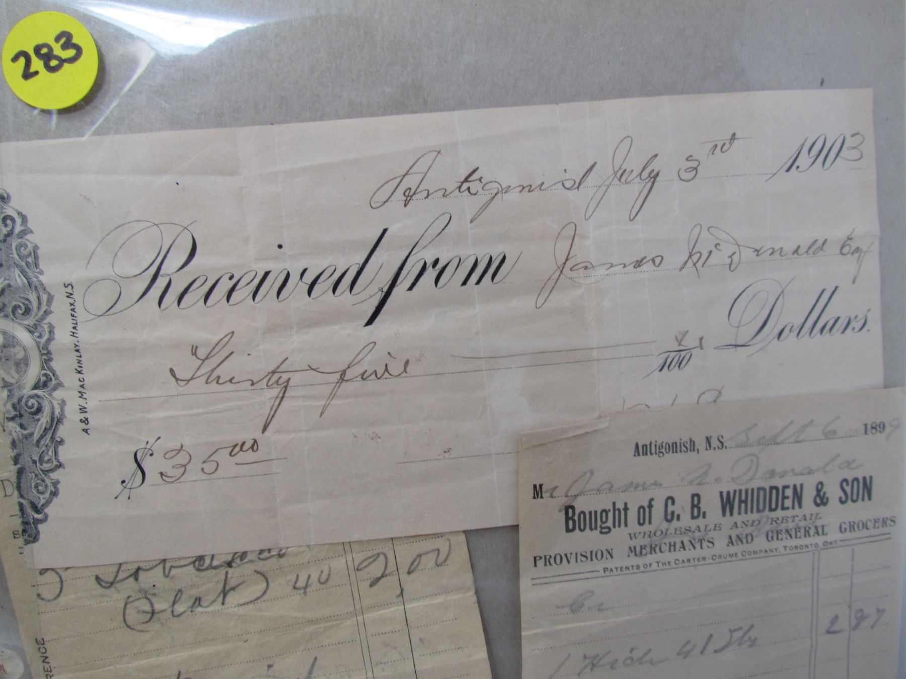 LOT OF RECIEPTS (1800'S AND 1900'S)