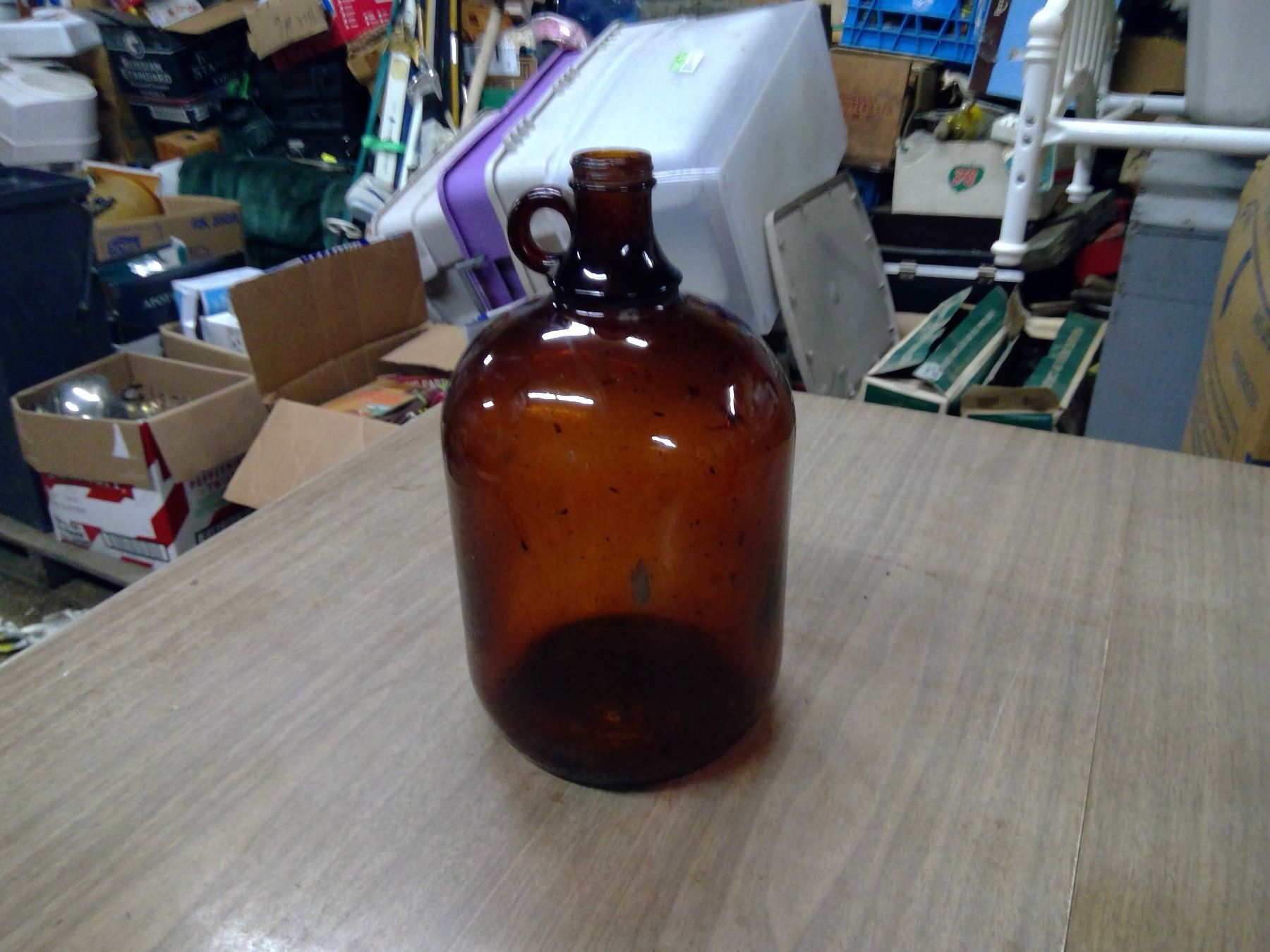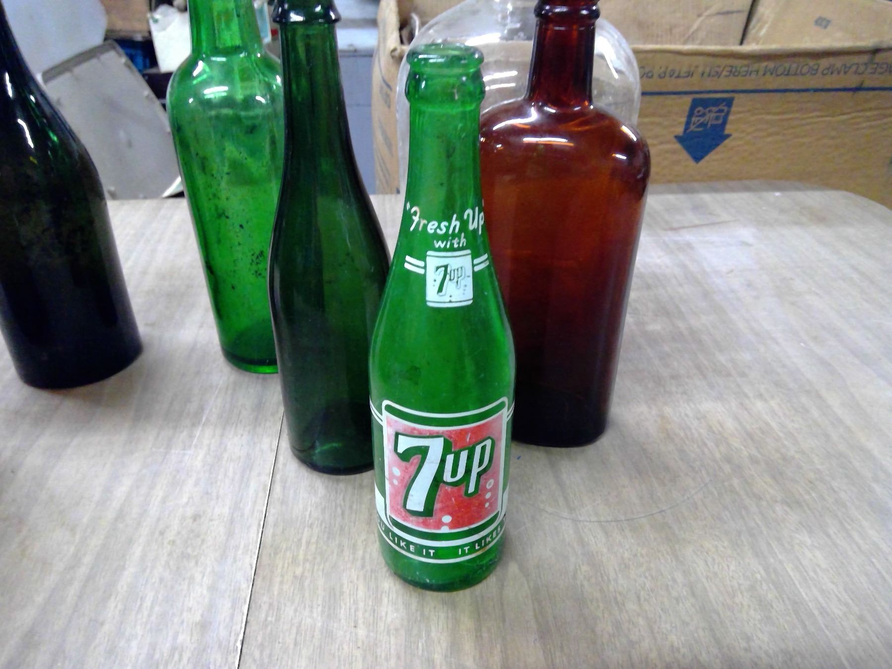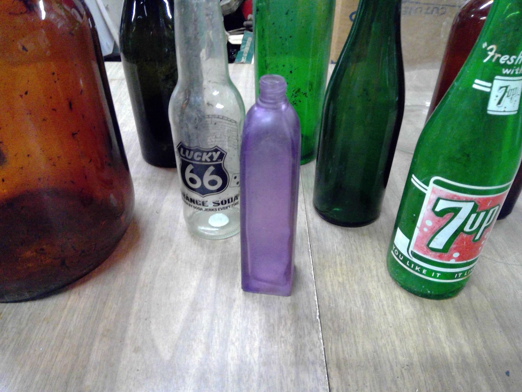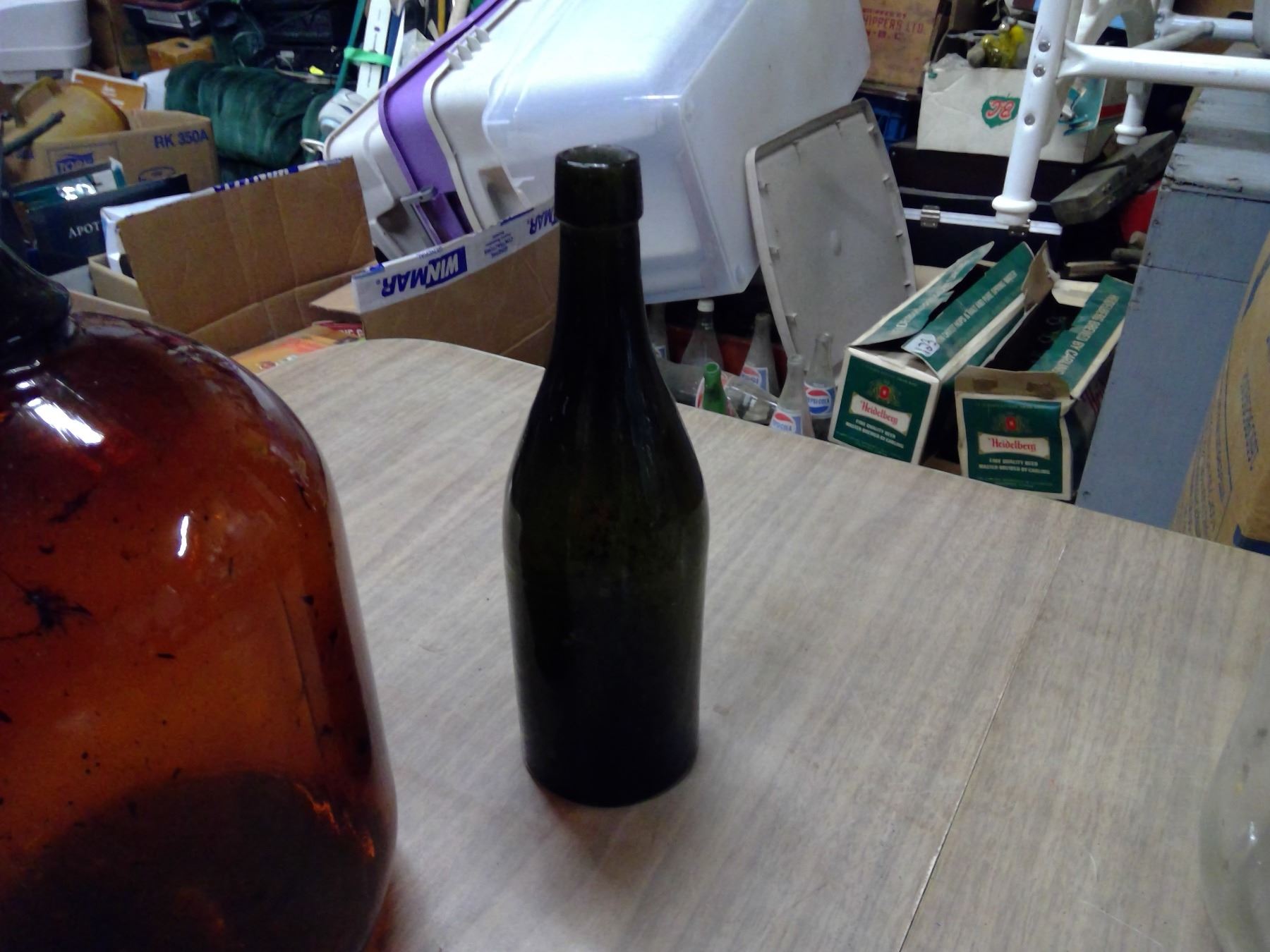 LOT OF RED BOTTLES AND GLASS JUGS