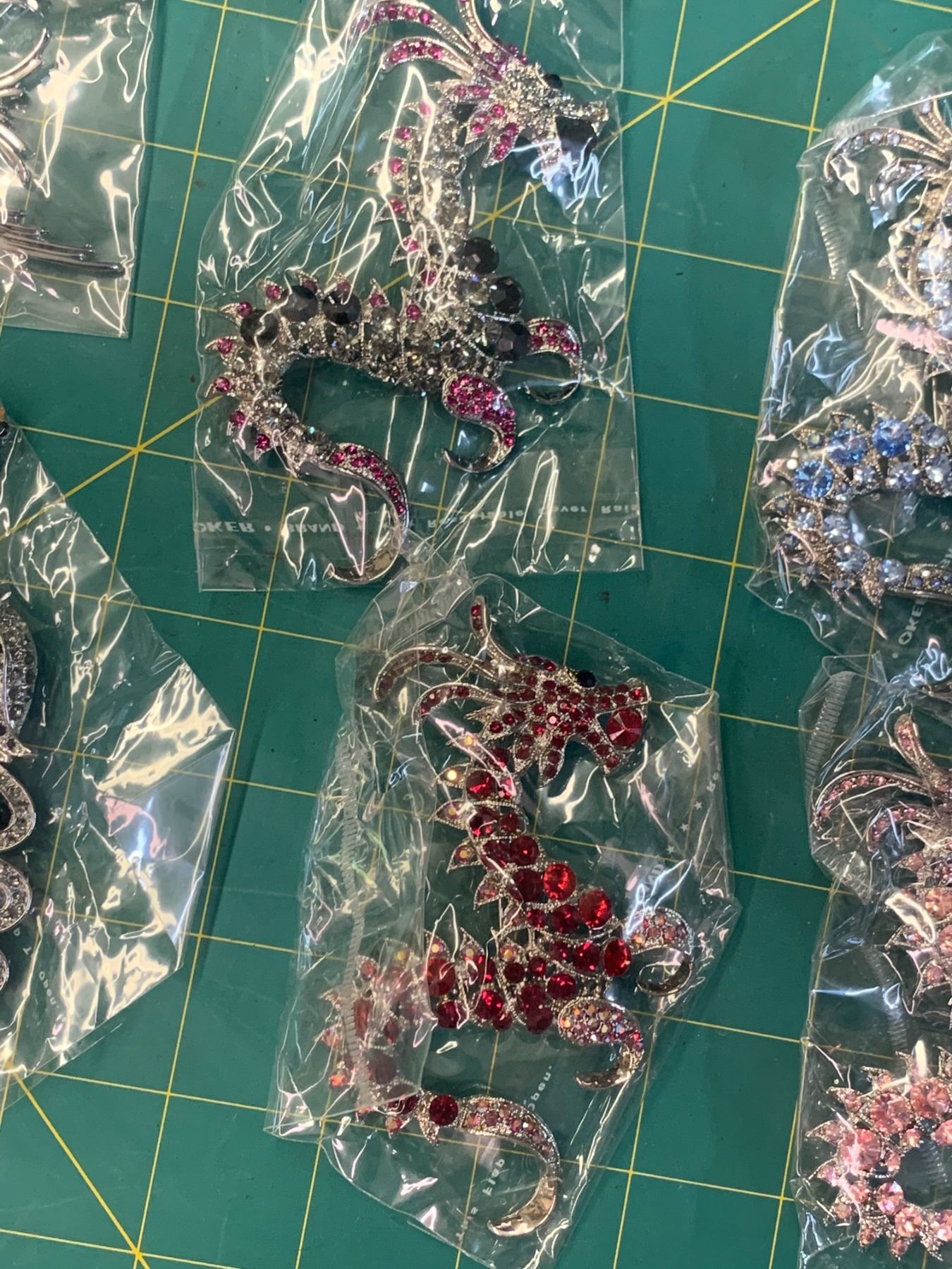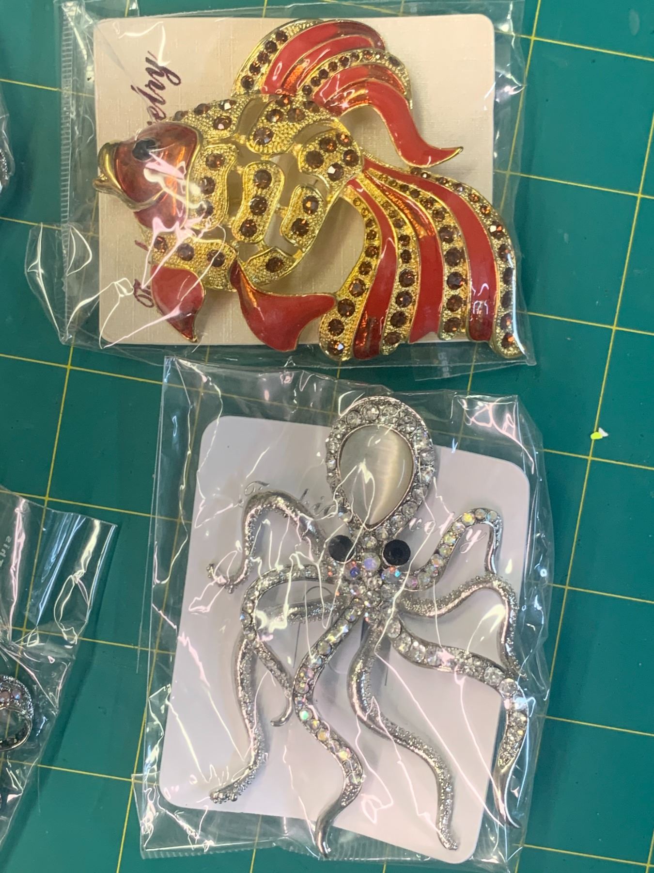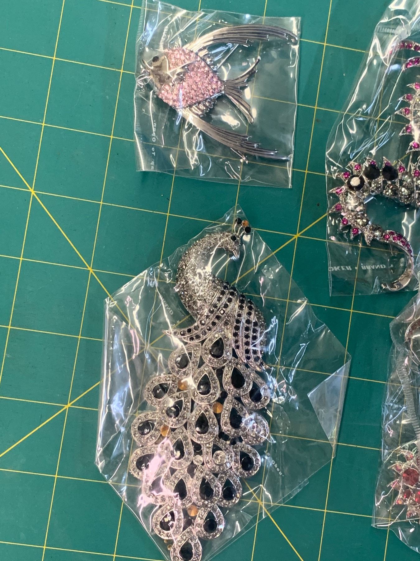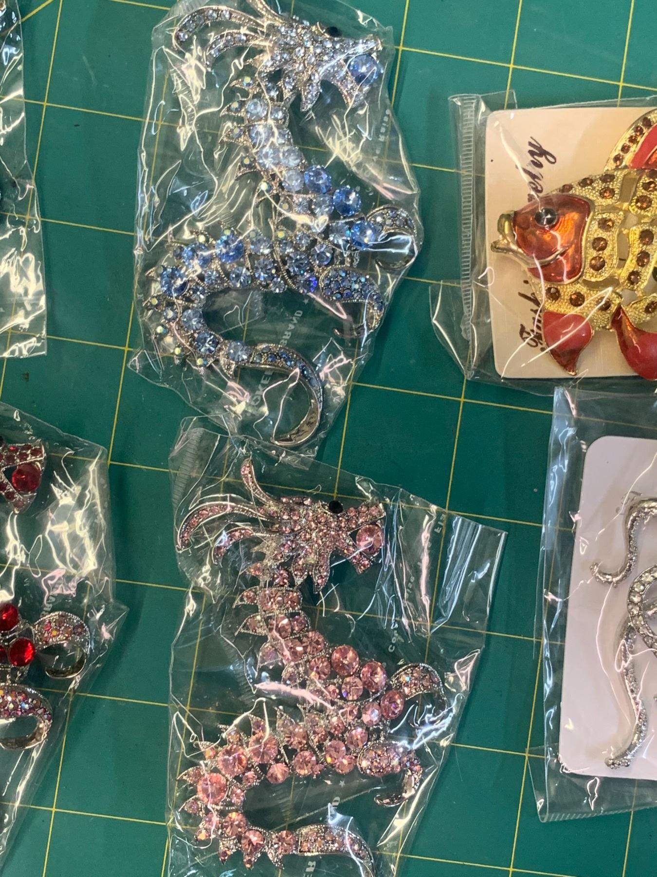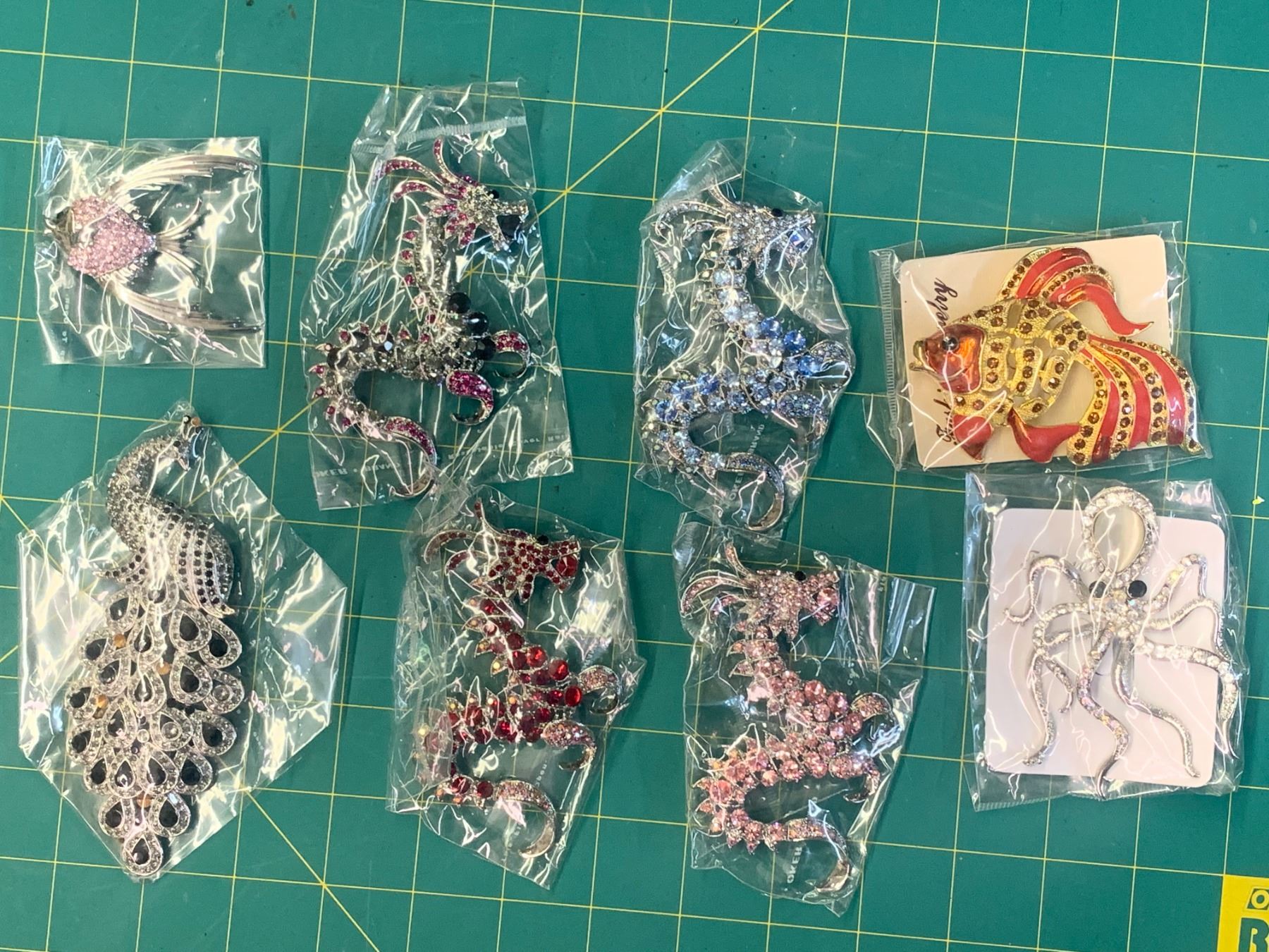 LOT OF RHINESTONE BROACHES FISH DRAGON SEAHORSE