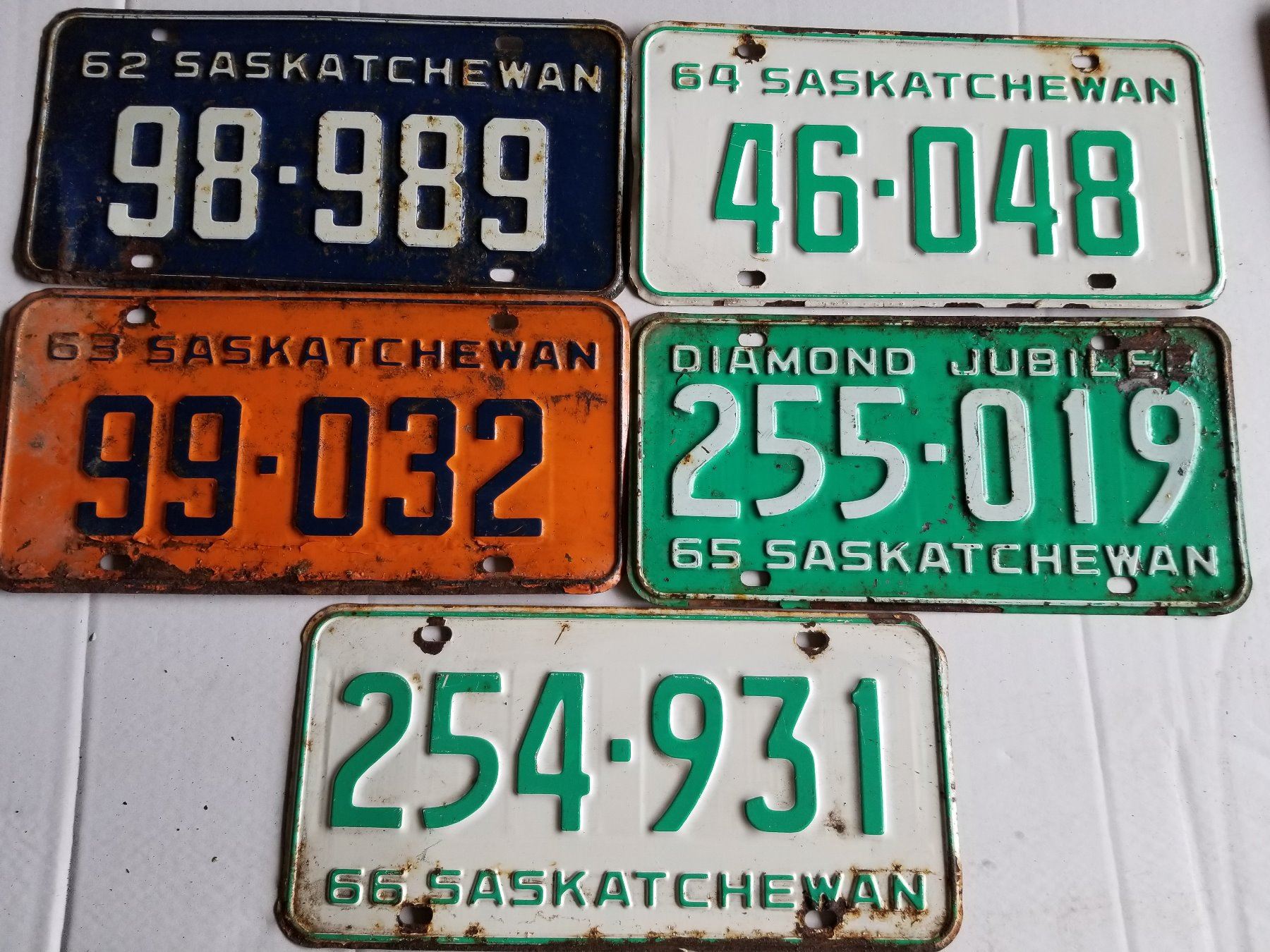 LOT OF SASKATCHEWAN LICENSE PLATES (1962, 1963, 1964, 1965, 1966)