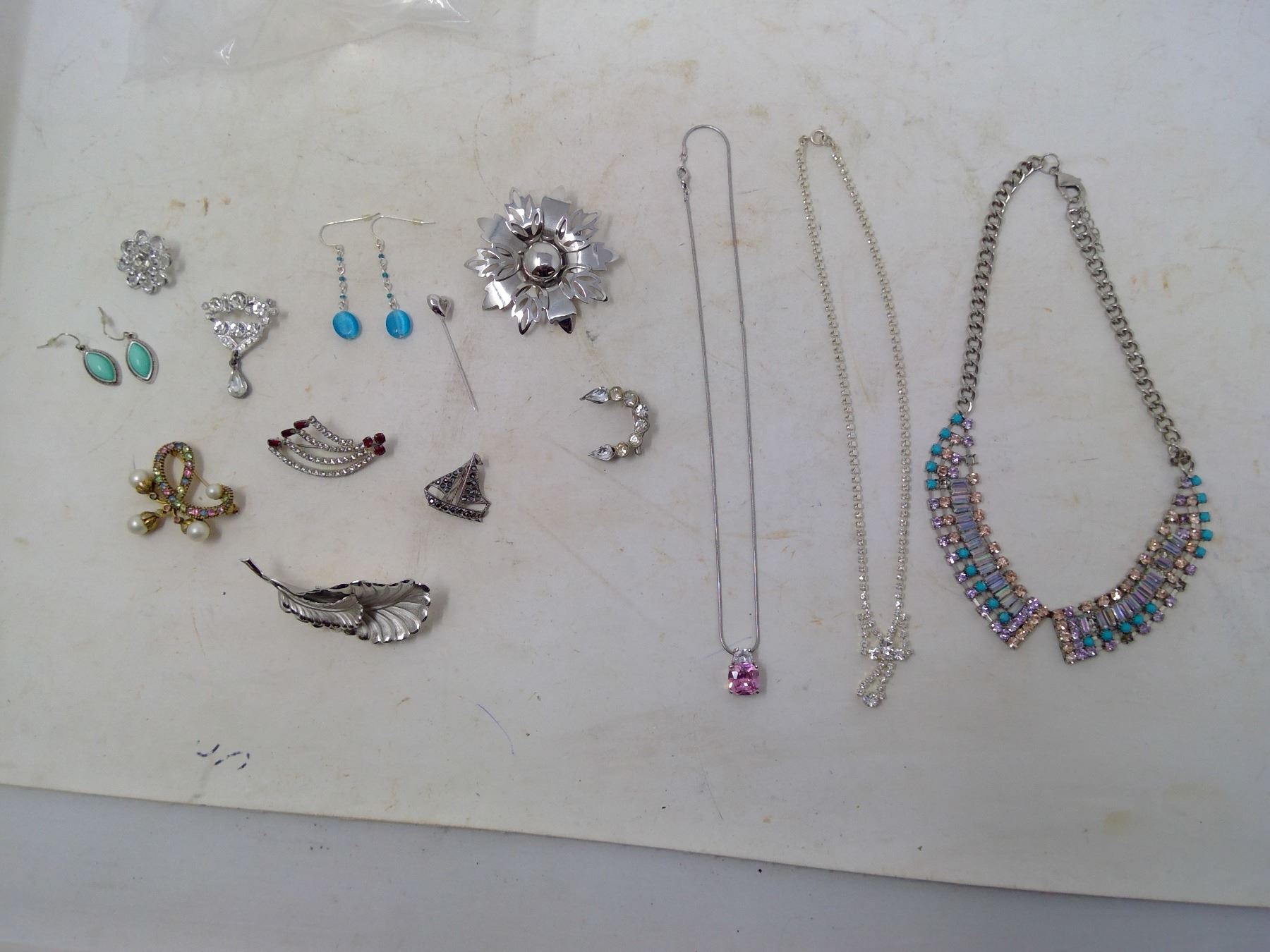 LOT OF SILVERTONE/RHINESTONE JEWELRY
