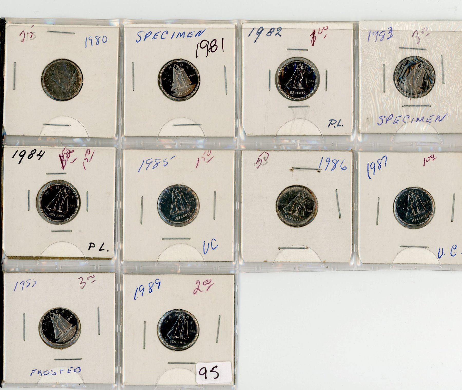LOT OF TEN-10 CENT COINS (CANADA) *1980-1989*