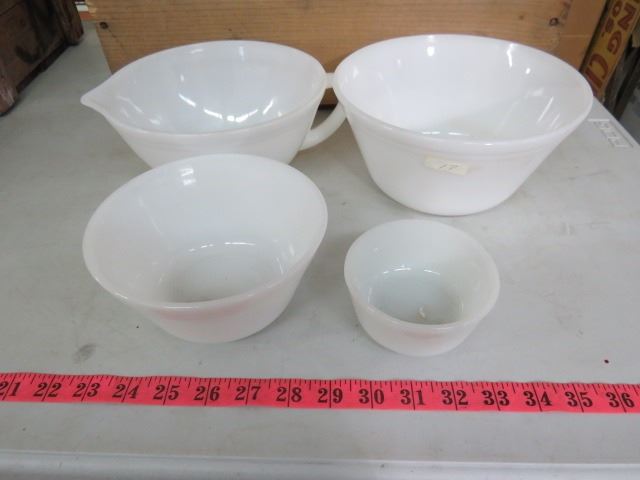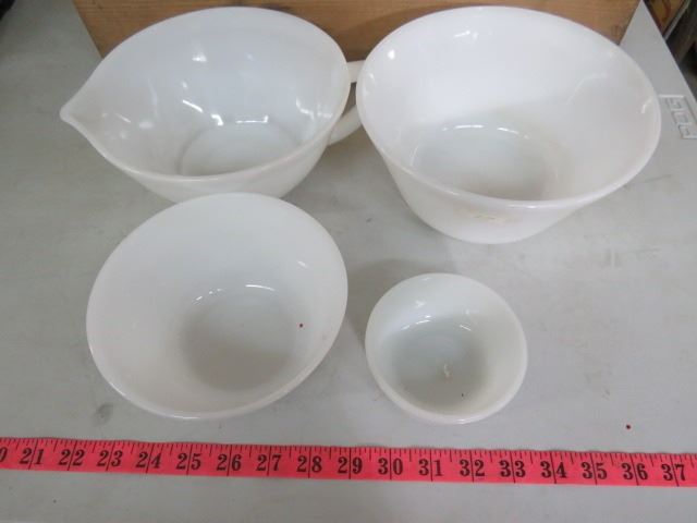 LOT OF THREE PYREX BOWLS AND A BATTER BOWL