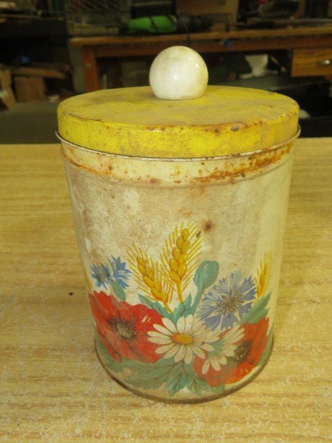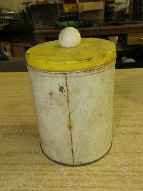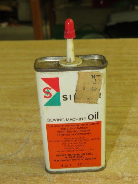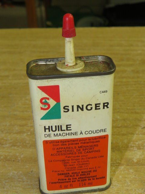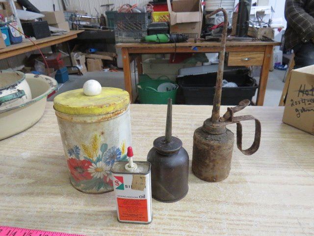 LOT OF TINS, 2 OIL, 1 SINGER, 1 CANNISTER