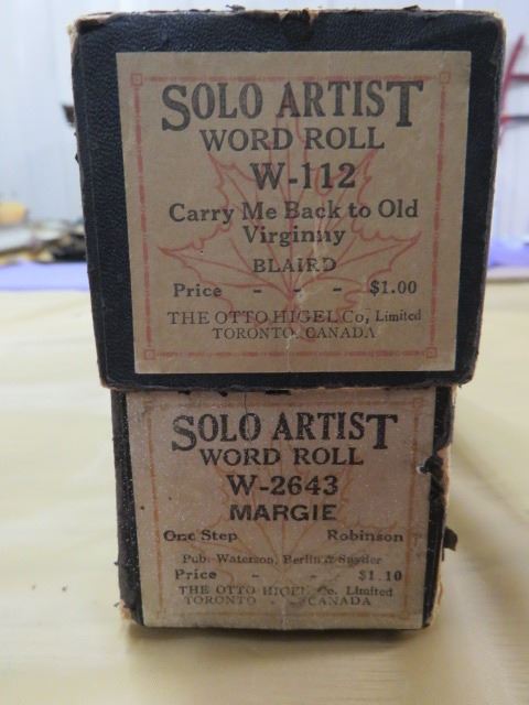 LOT OF TWO PLAYER PIANO ROLLS AND RECORD CLEANER (CARRY ME BACK TO OLD VIRGINNY & MARGIE)