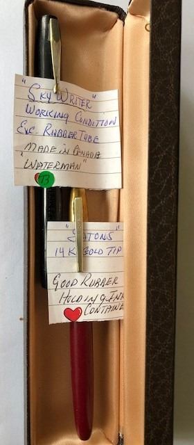 LOT OF TWO VINTAGE FOUNTAIN PENS (‘SKY WRITER’ AND ‘EATONS’ WITH 14 K GOLD TIP) *GOOD RUBBERS*