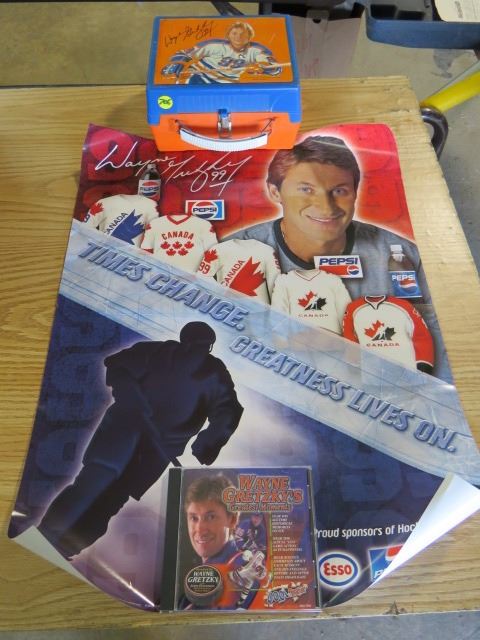 LOT OF WAYNE GRETZKY ITEMS (LUNCH BOX, POSTER, DVD)
