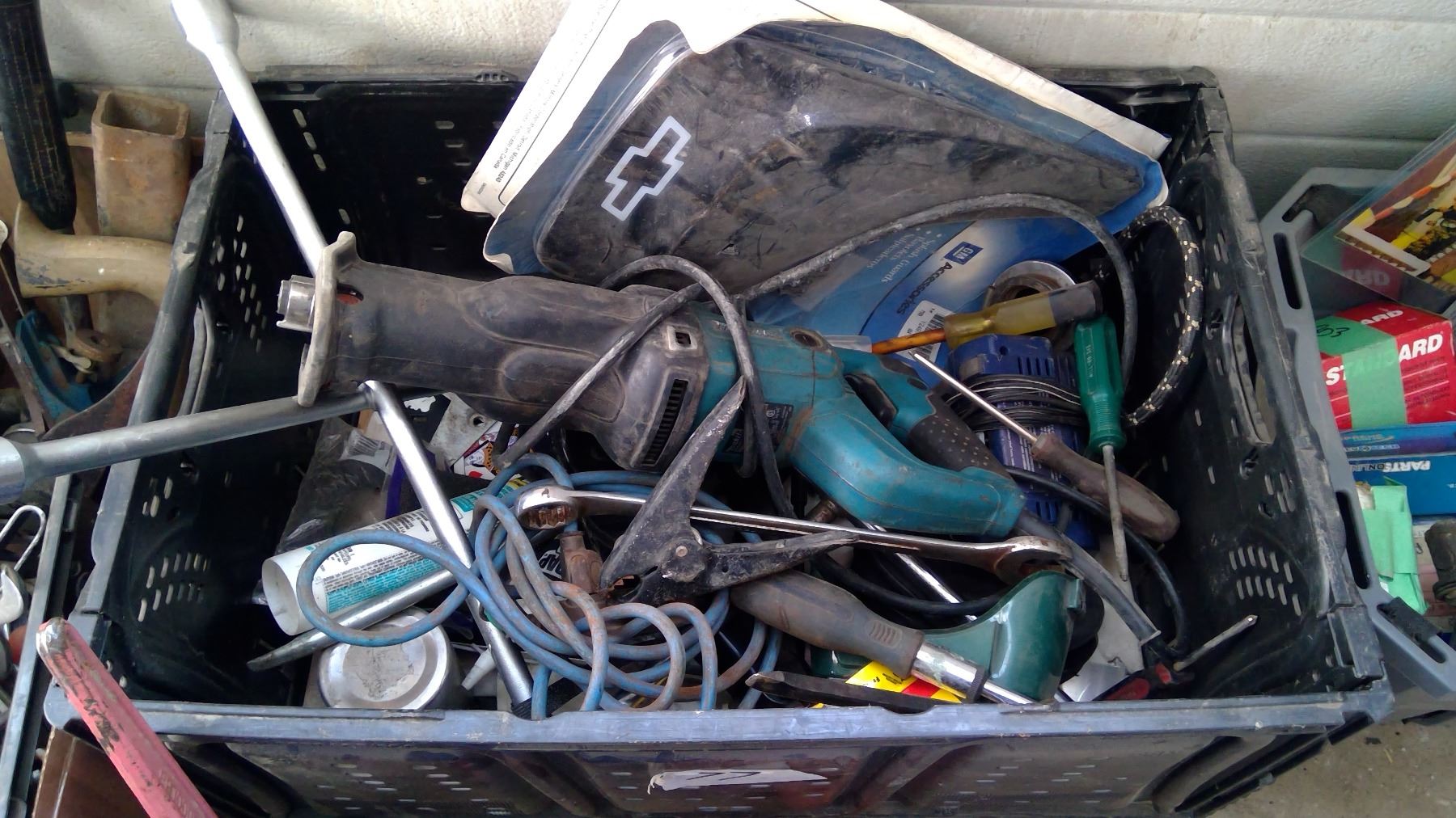 LOT OF WHEEL WRENCHES, MUD FLAPS, MAKITA SAWZALL