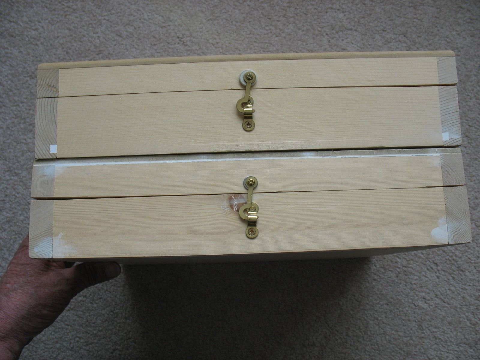 LOT of 2 WOODEN DISPLAY/STORAGE BOXES - Inside measurements 12" X 10.5" X 1 1/2"