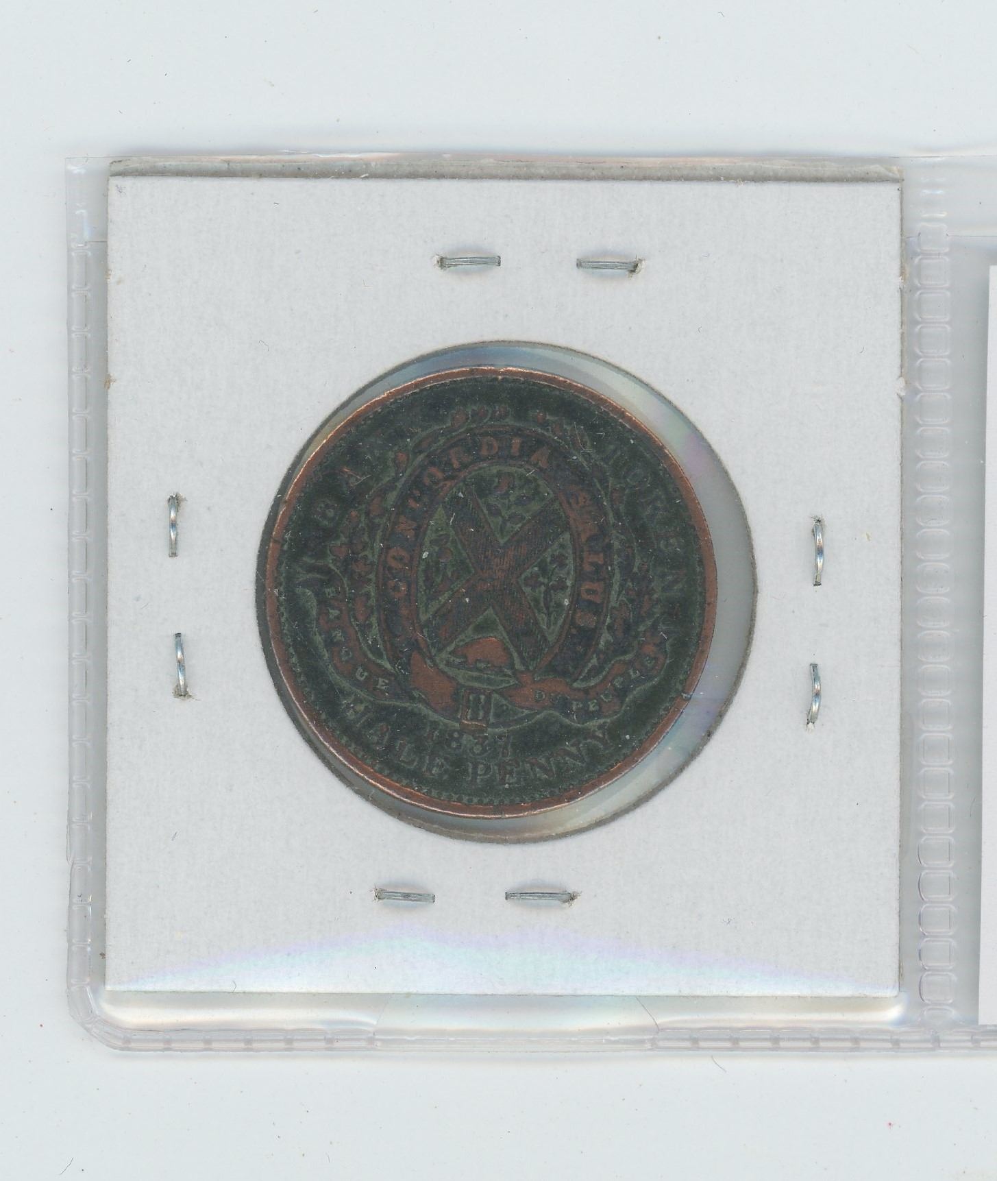 Lower Canada 1837 Banque du Peuple Half Penny Habitant pre-Confederation token. LC-8C1. VG-8