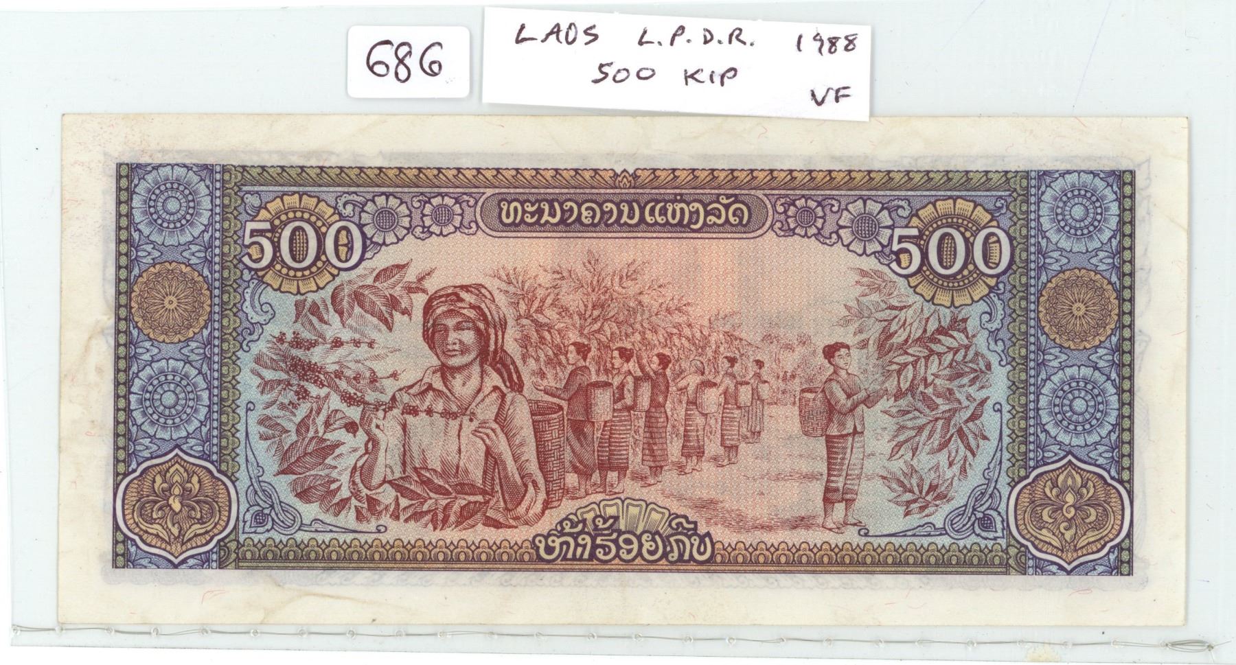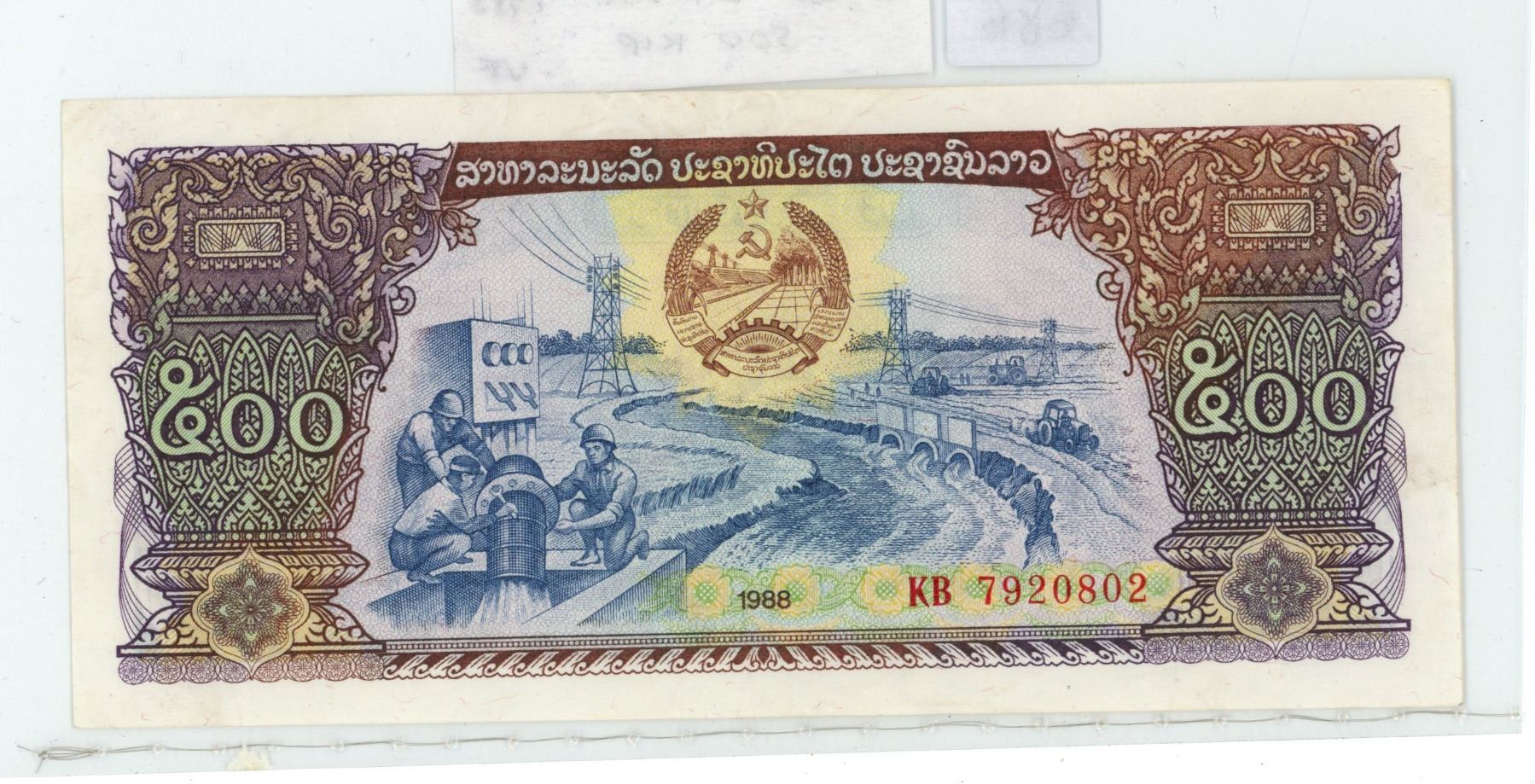 Laos. Lao People's Democratic Republic 1988 500 Kip. Large denomination note. VF.