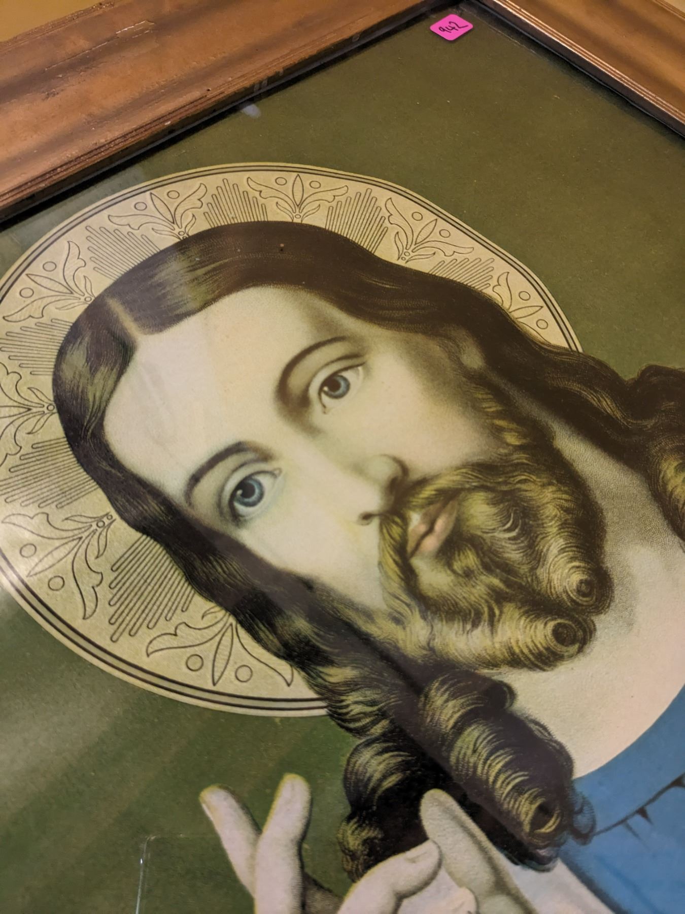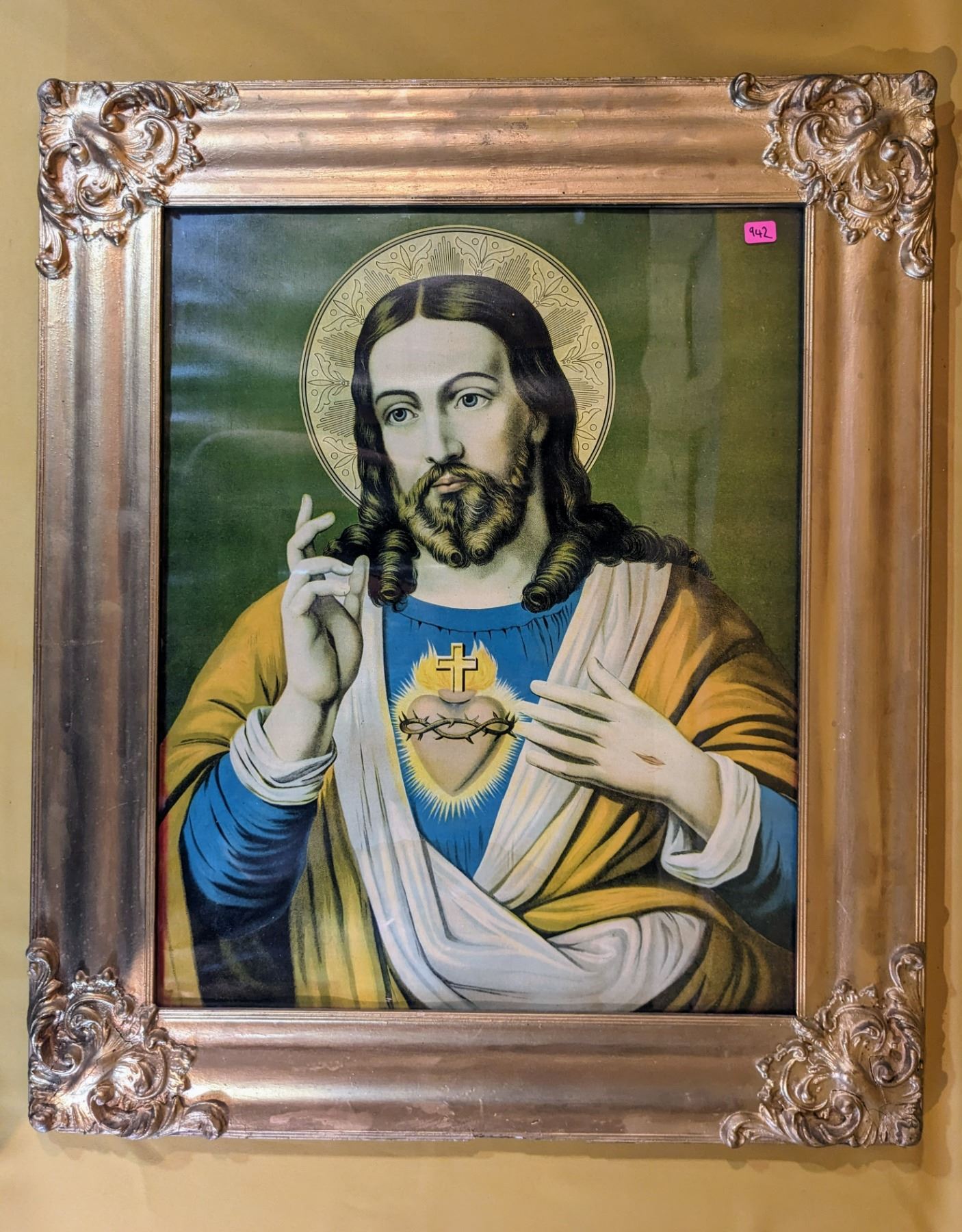 Large 1922 giltwood framed picture of Jesus (22" X 26").