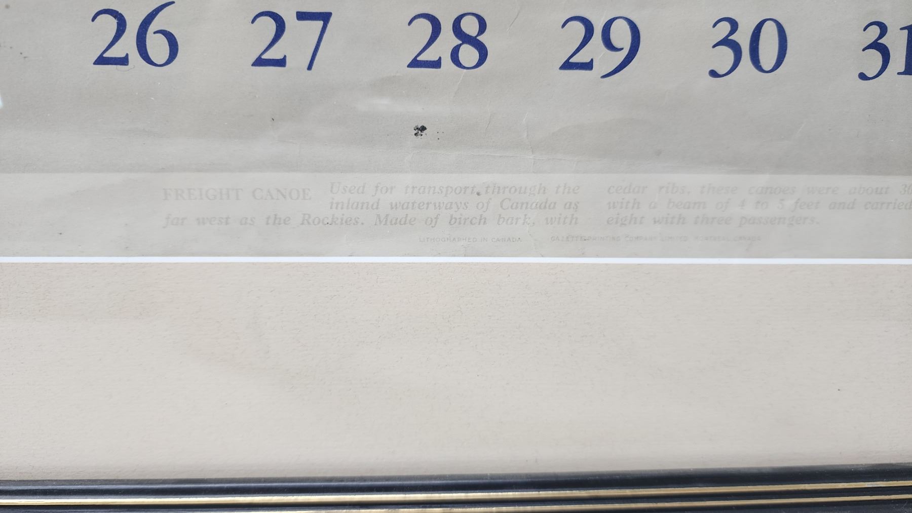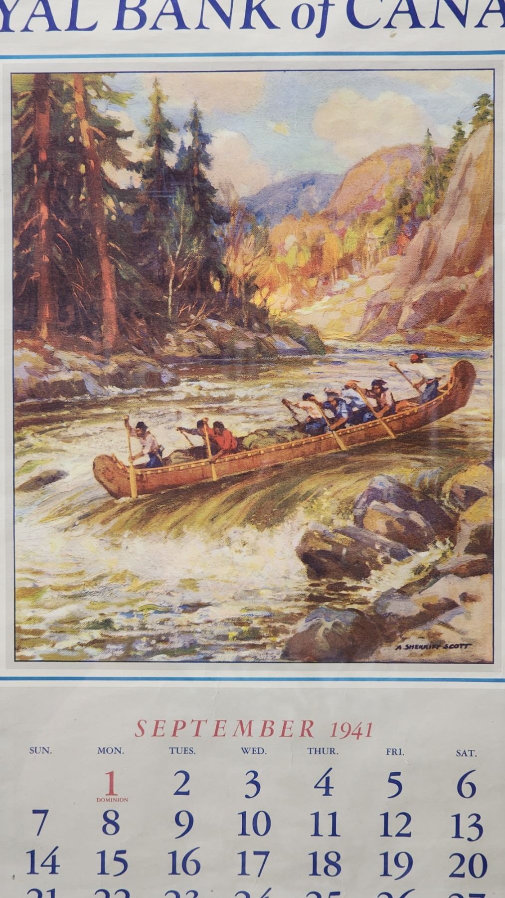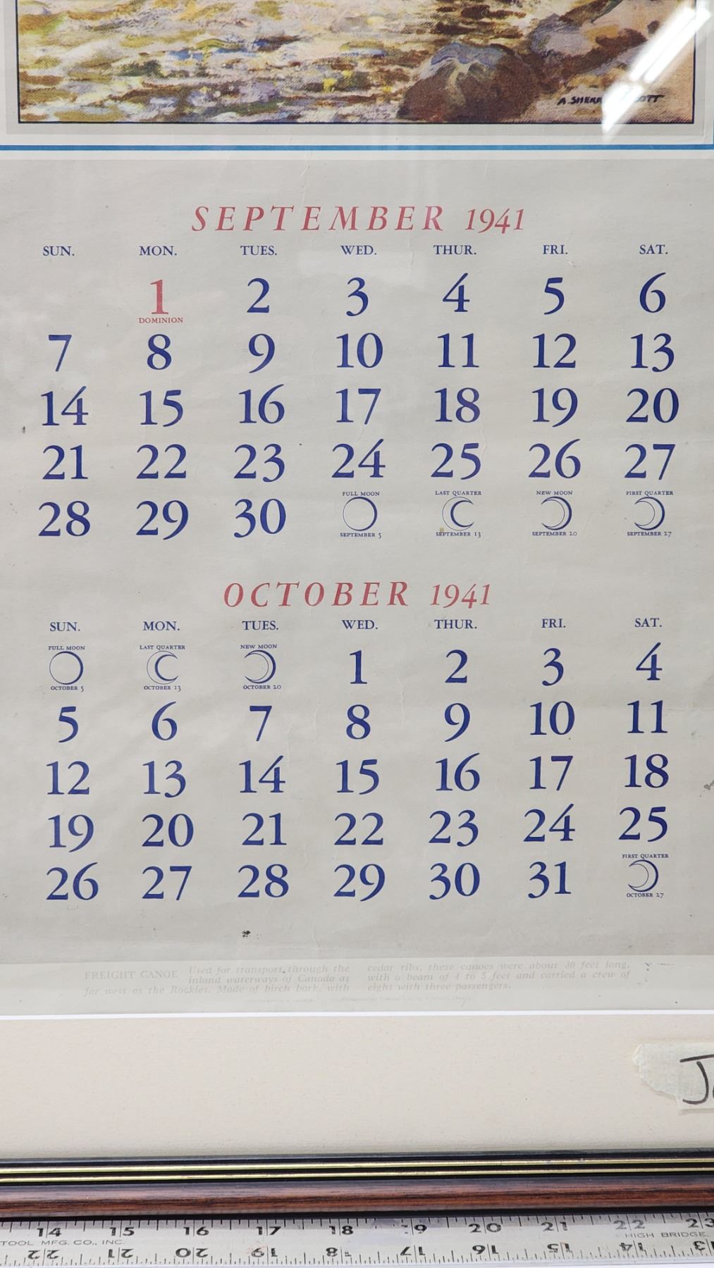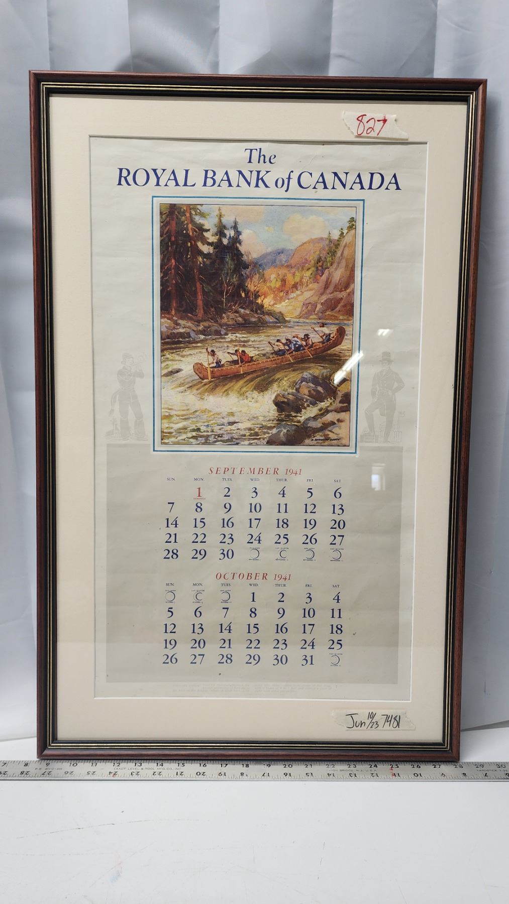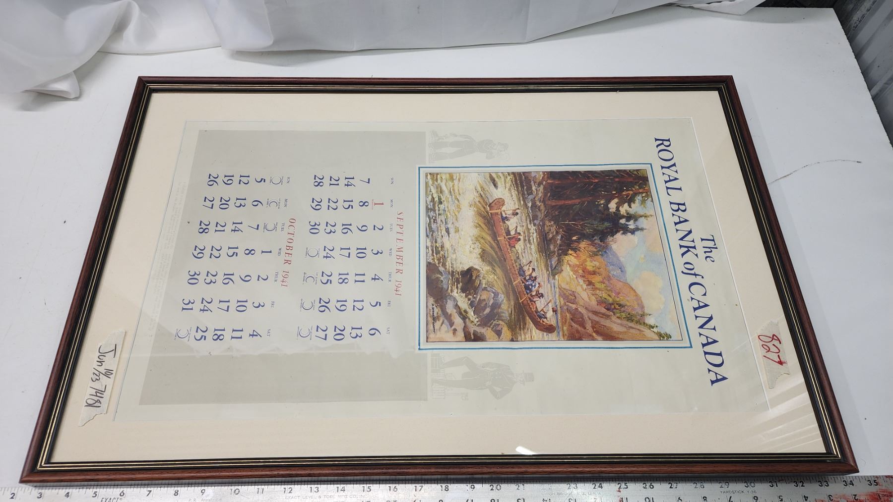 Large 1941 framed "Bank of Canada" calendar - 31"H x 20"W