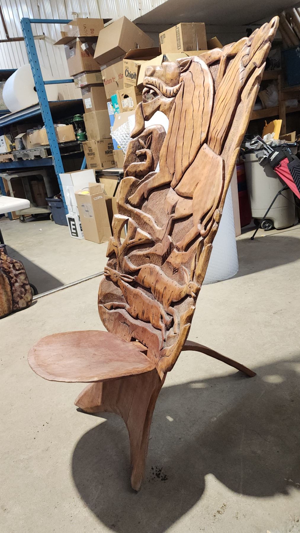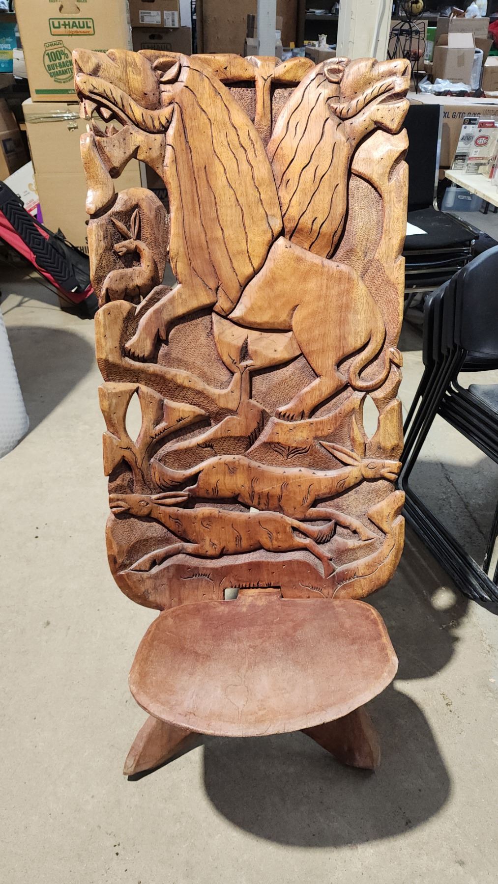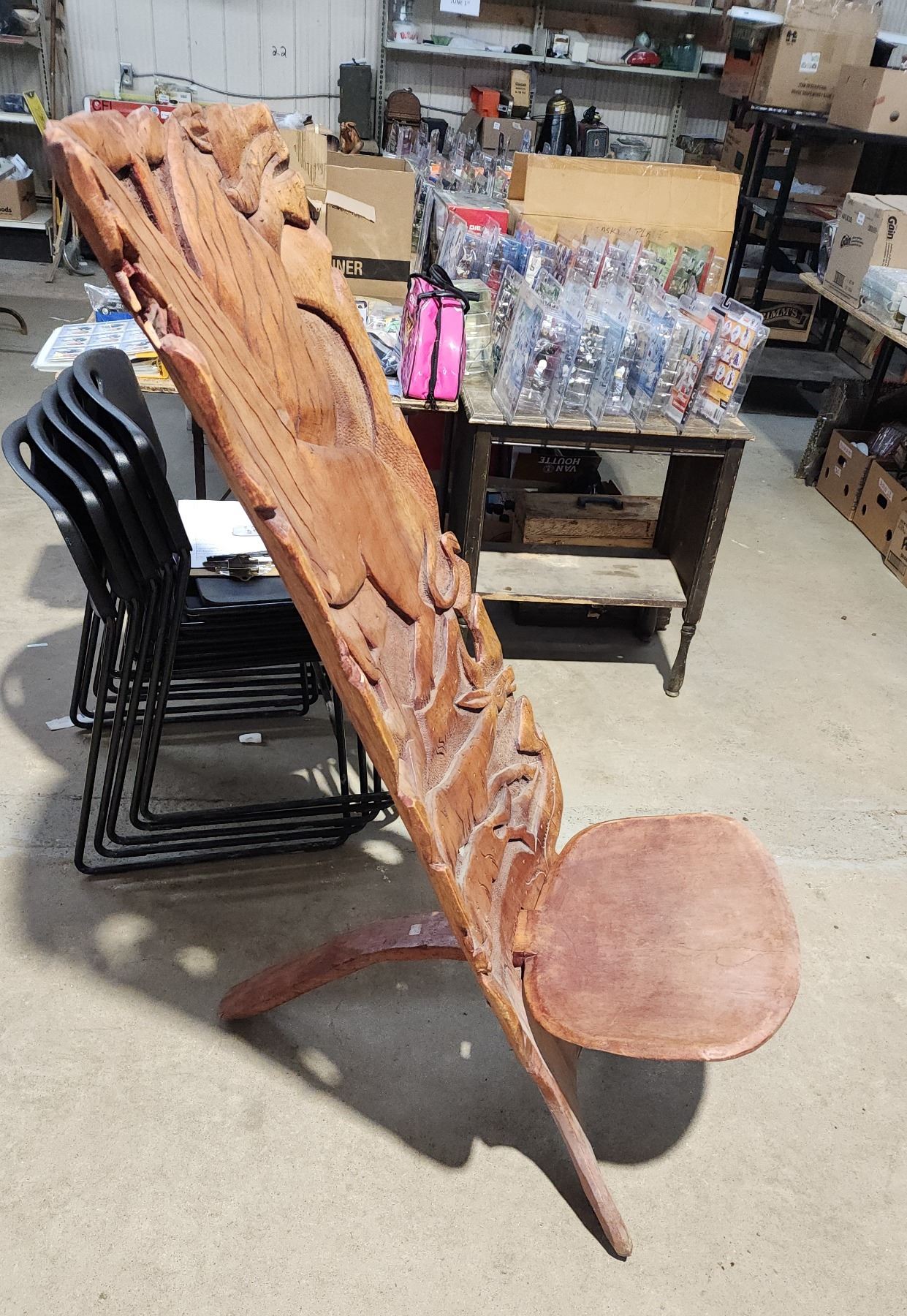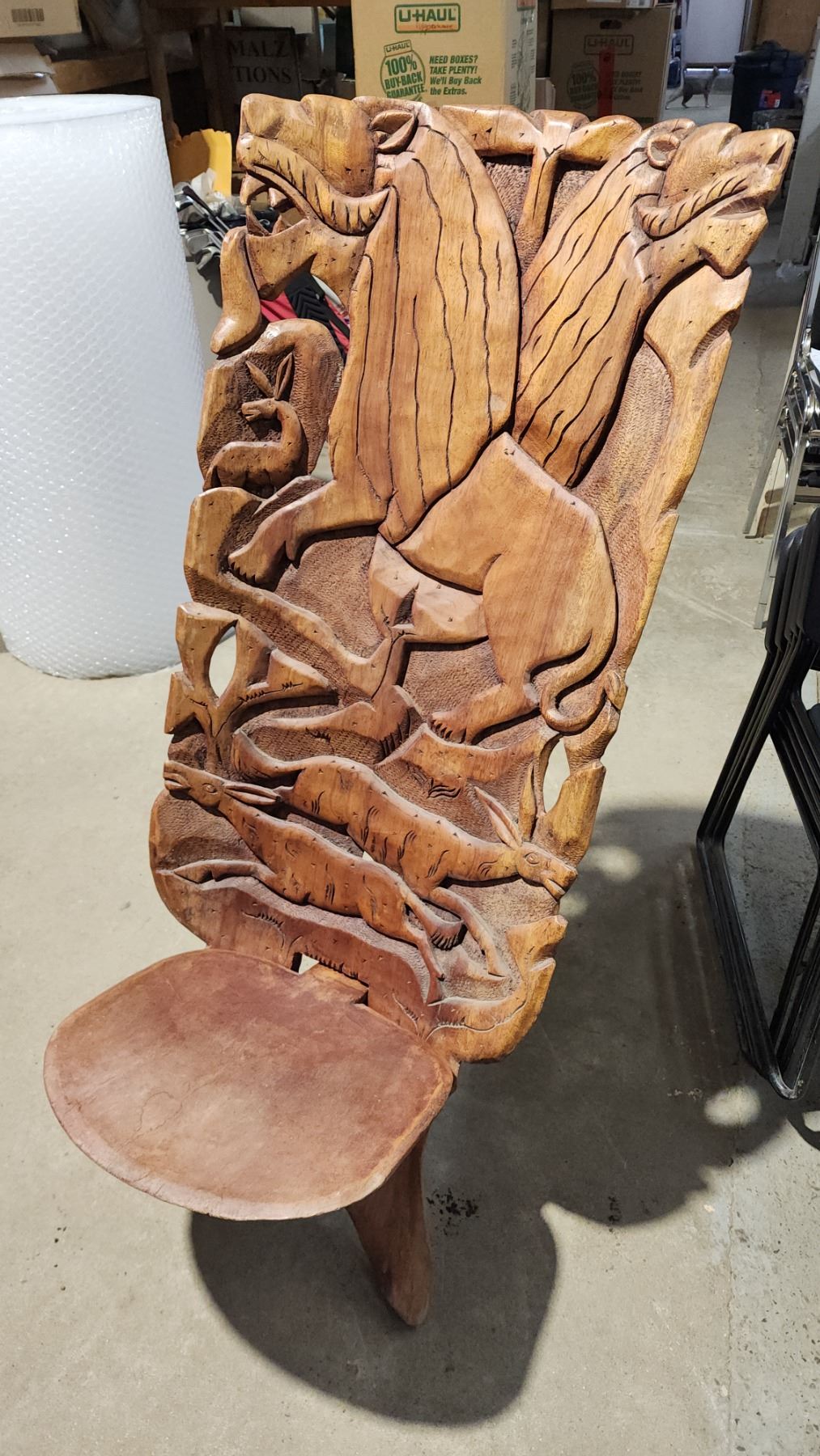 Large 2pc hand carved wooden decorative chair - 51"H x 25"W x 36"D