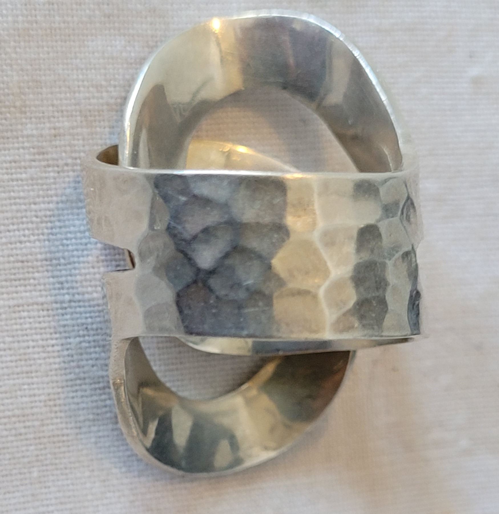 Large 925 silver hammered fashion ring & 2 bracelets. (hand not included)
