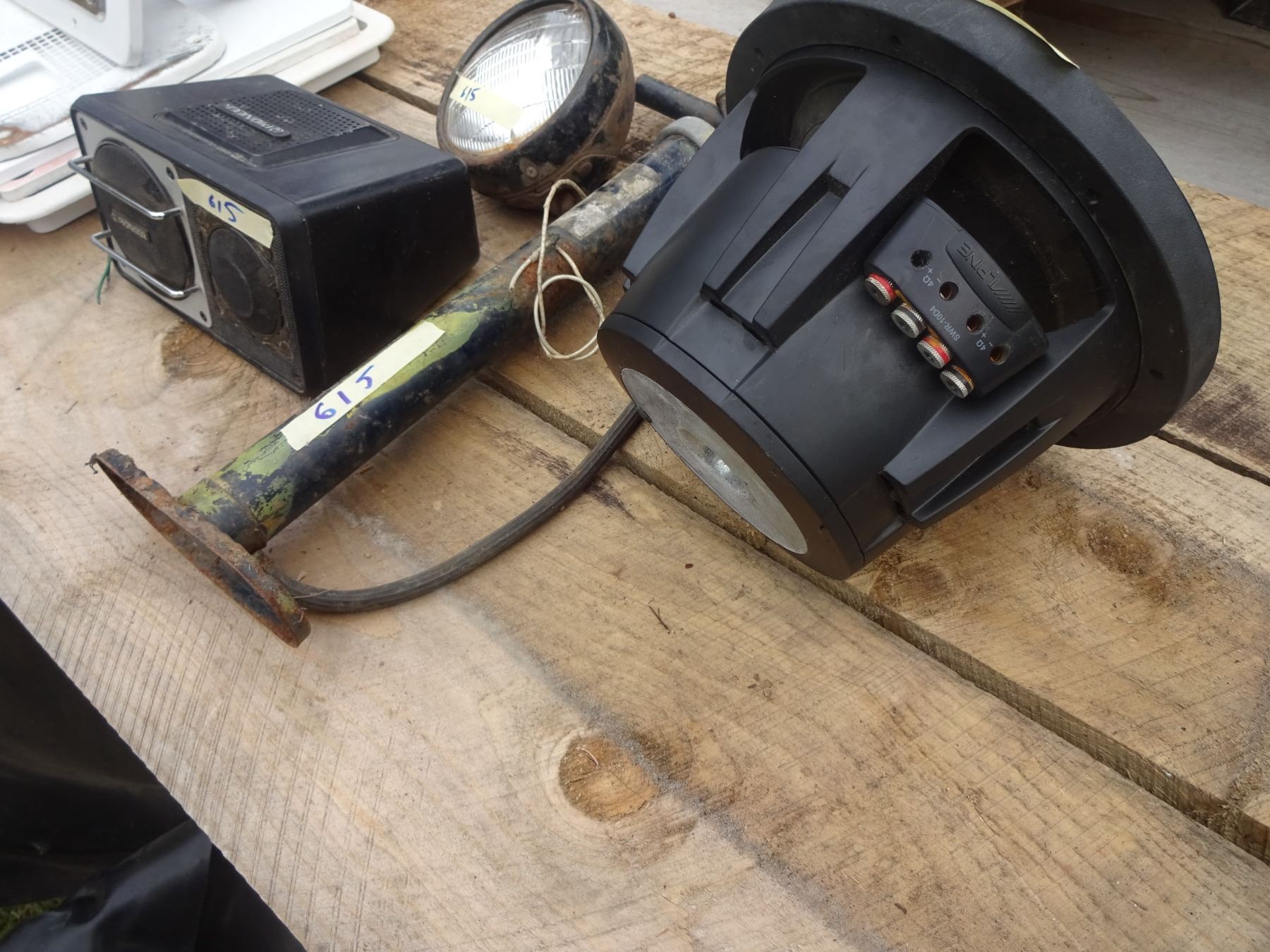 Large Alpine Speaker, Pioneer Speaker, Old Head Lamp, Car Hand Pump