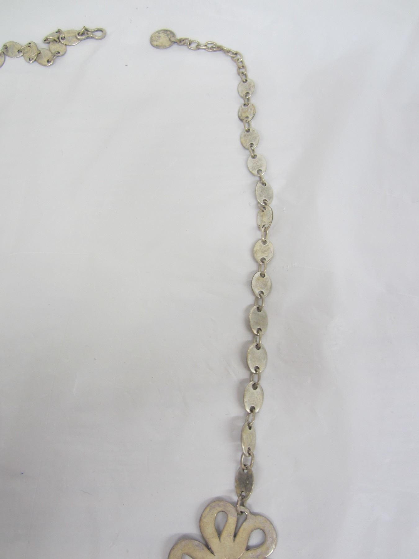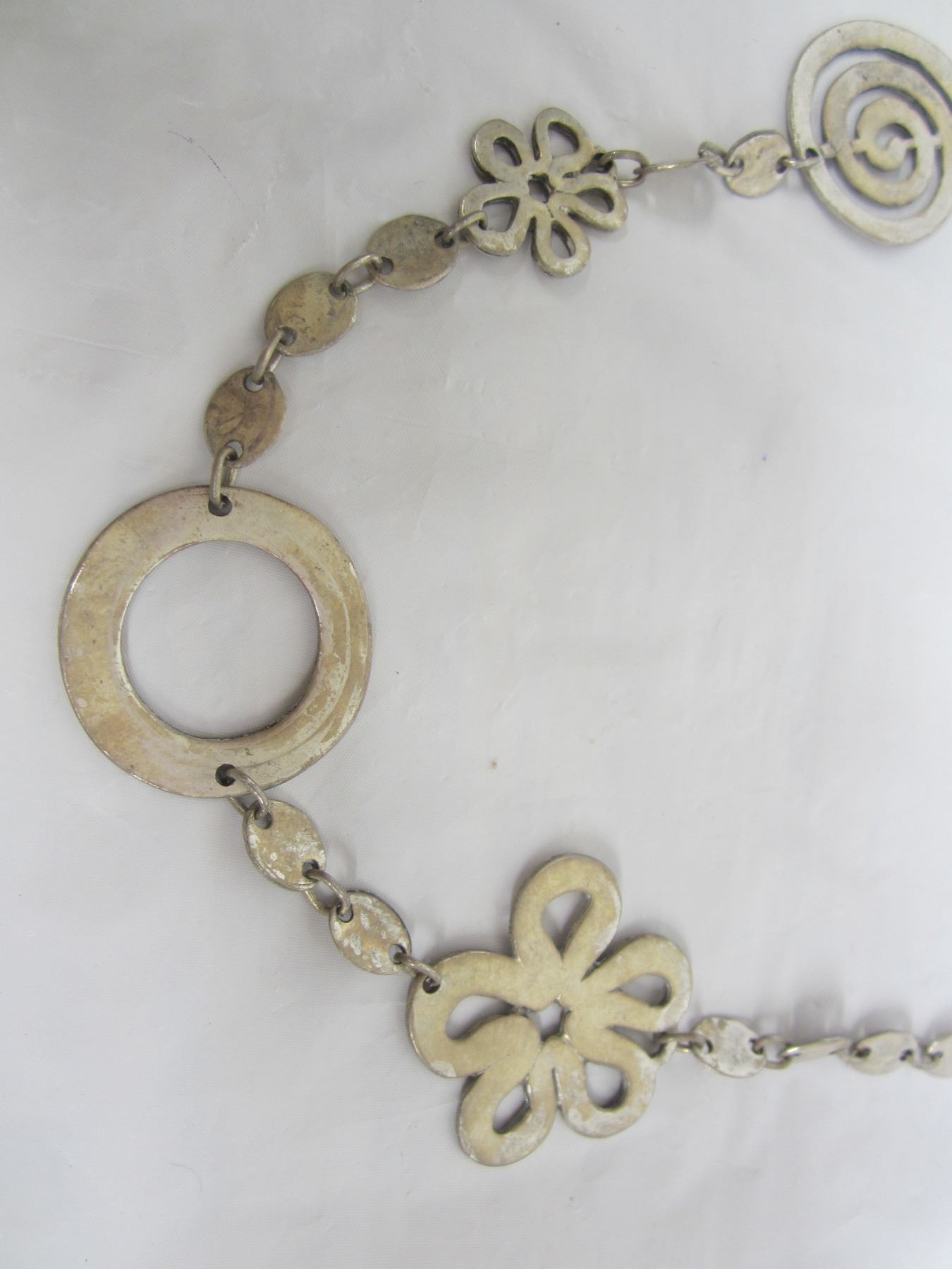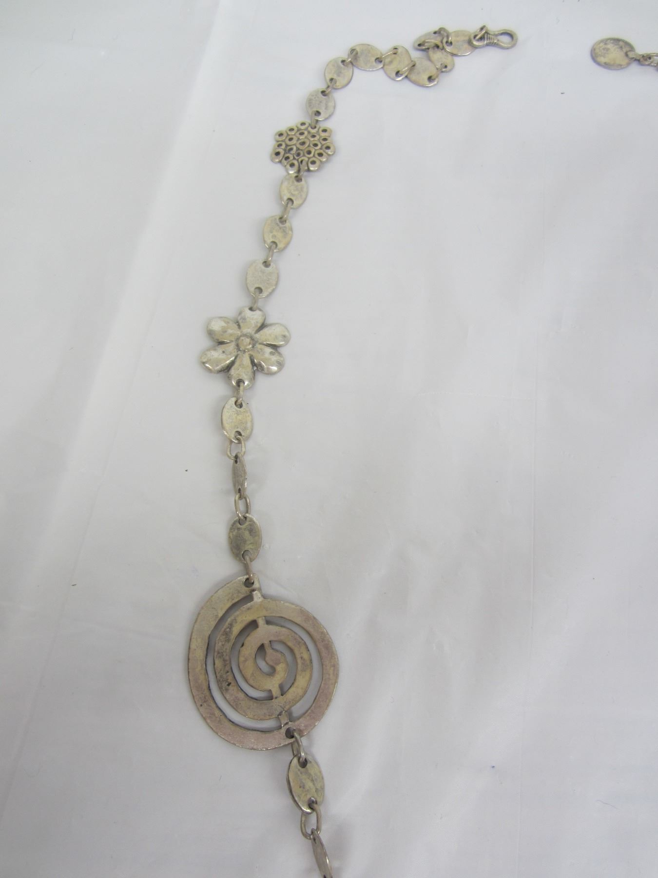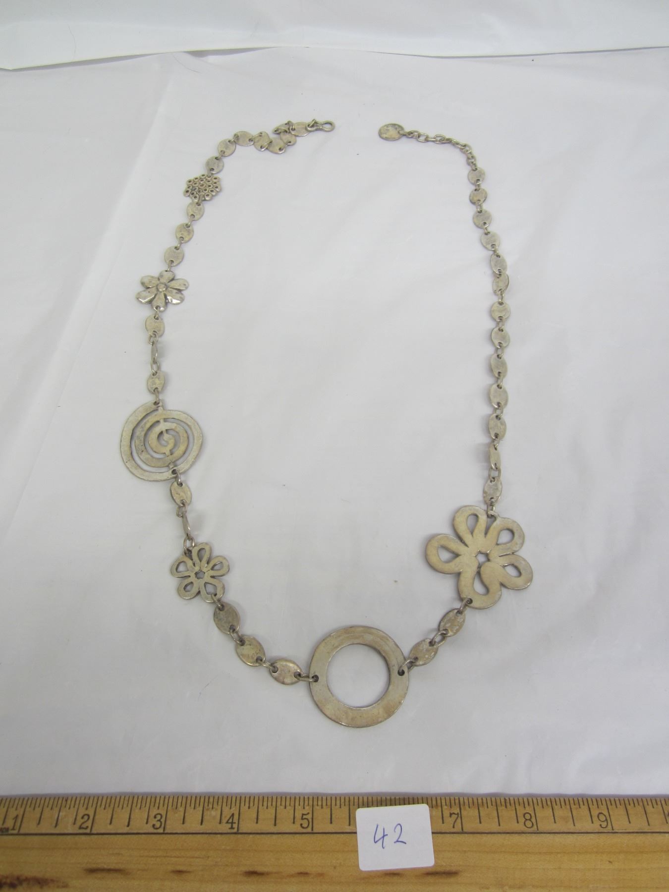 Large Antique Sterling Silver Handmade Necklace with Antique Coin Attached 67 Grams
