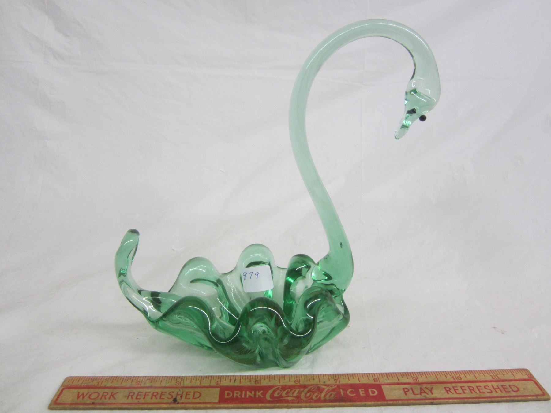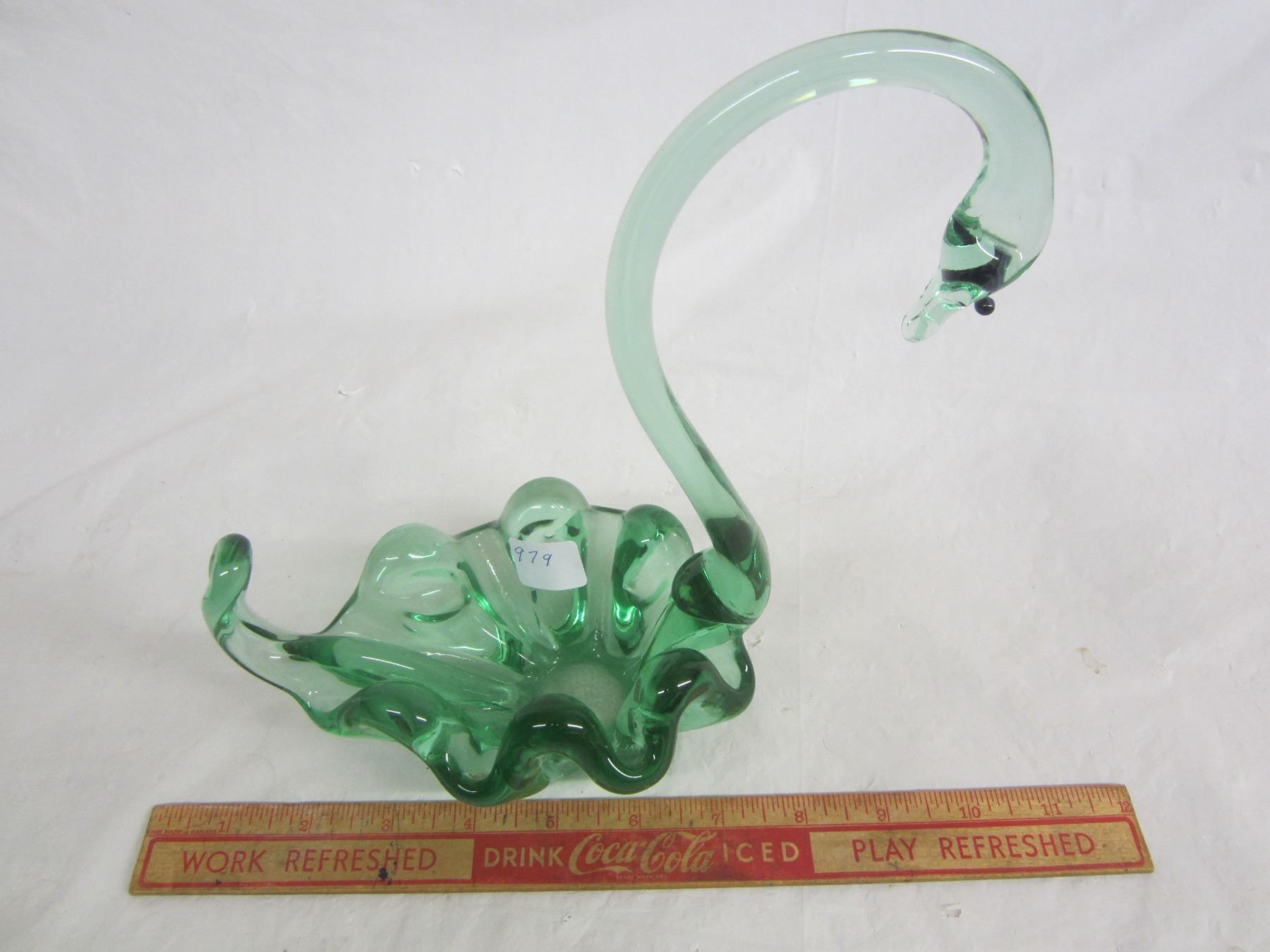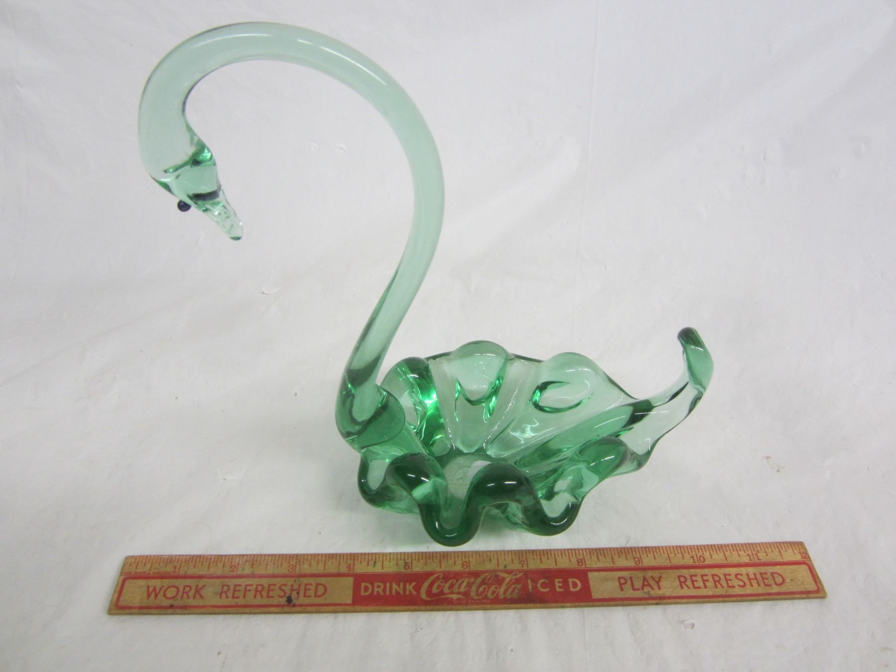 Large Art Glass Green Swan no damage