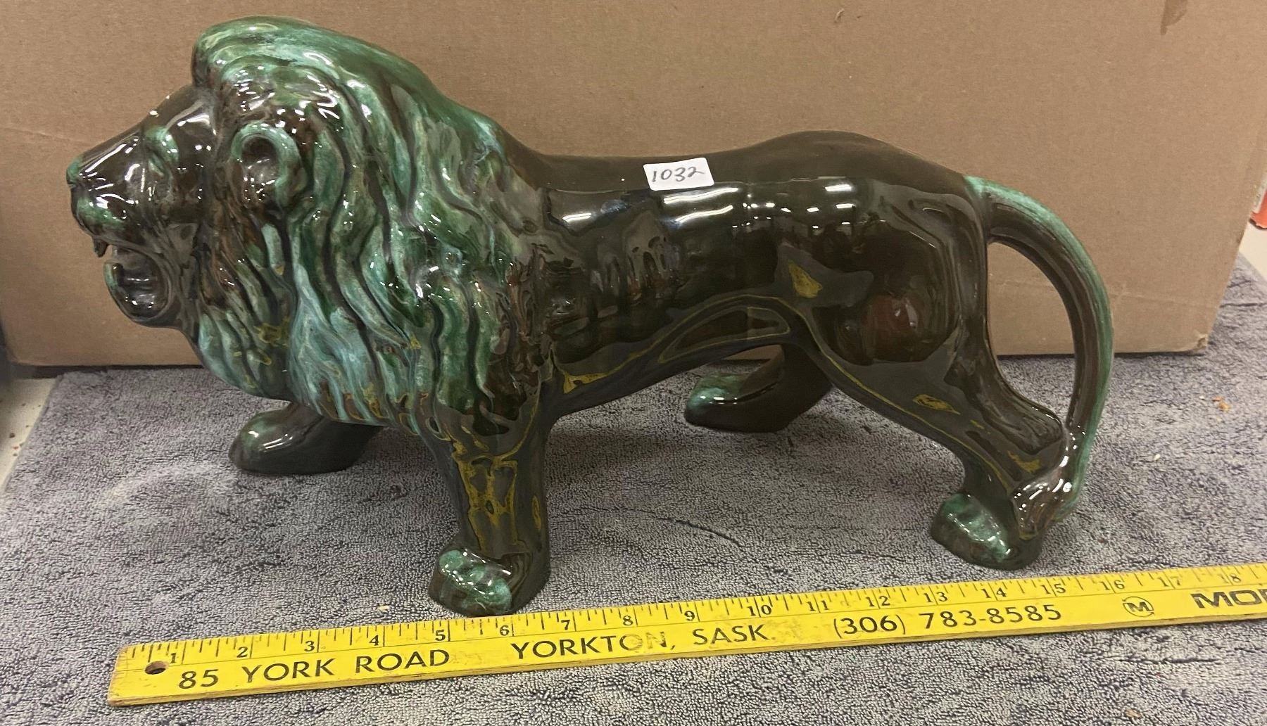 Large, Blue Mountain pottery, lion - 17"Long x 9"H
