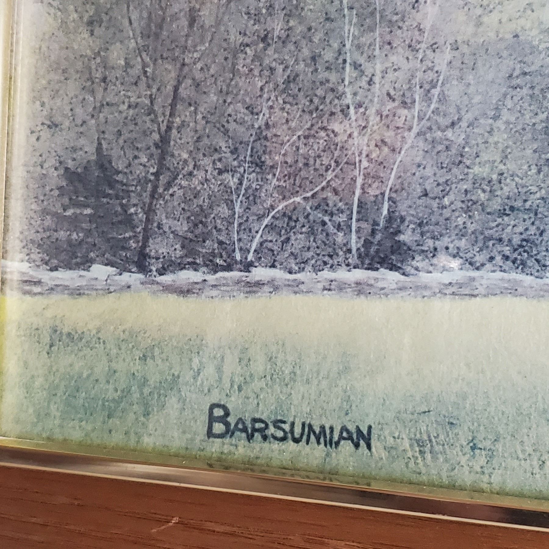 Large Gary Barsumian countryside barn farm art wall hanging framed approximately 38.5X14"
