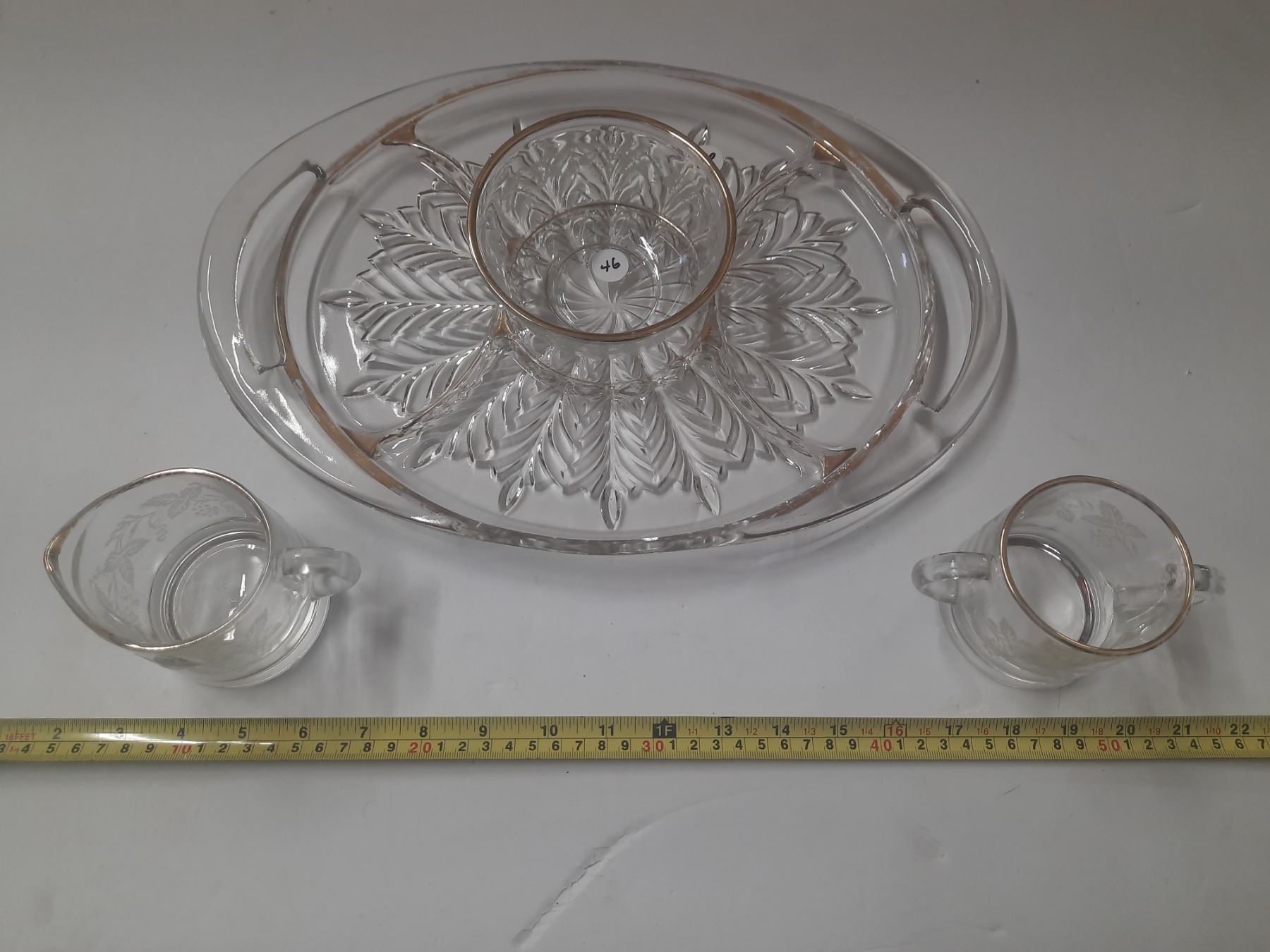 Large Gold Trimmed Vegetable Serving Platter Cream & Suger - Nip Bowl.