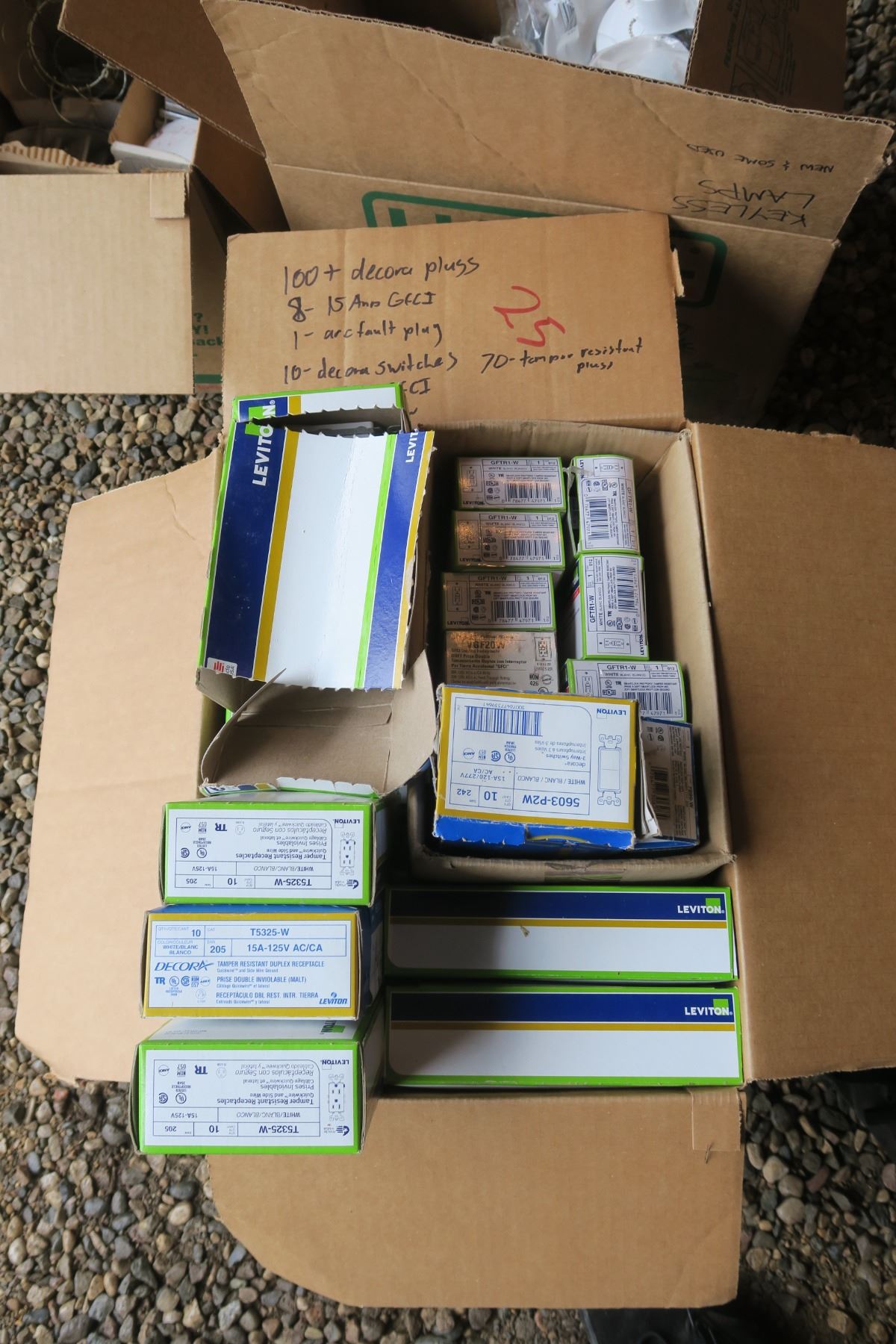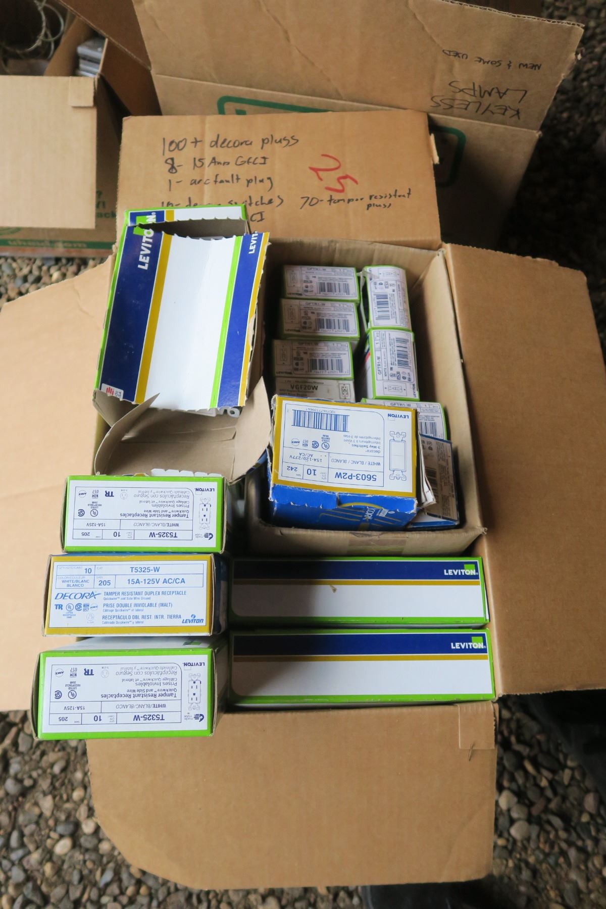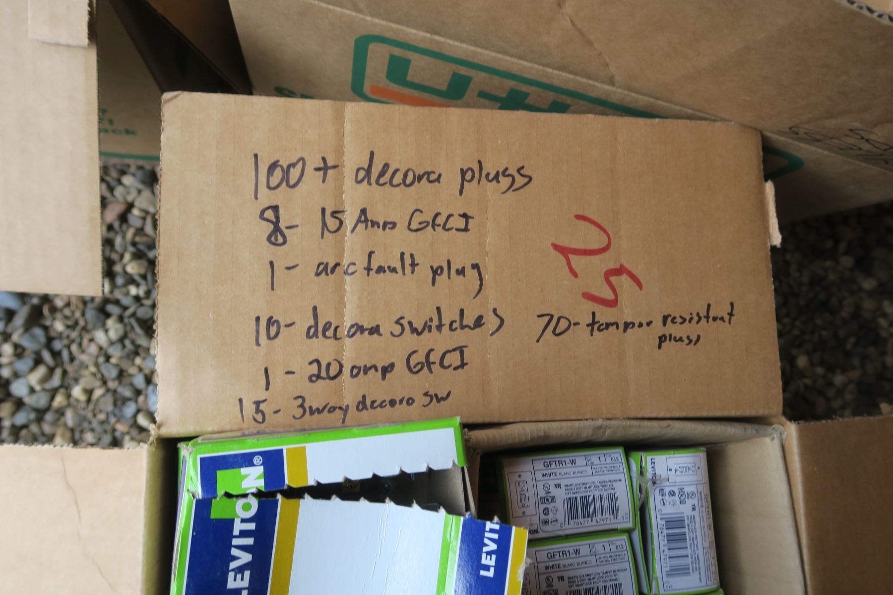 100+ Décor Plugs, 1 15amp GFCI, 1 Arc fault + Plug, Lo Décor switches, 120 amp GFCI, 5x 3way Décor SW, 7ox Resistant Plugs