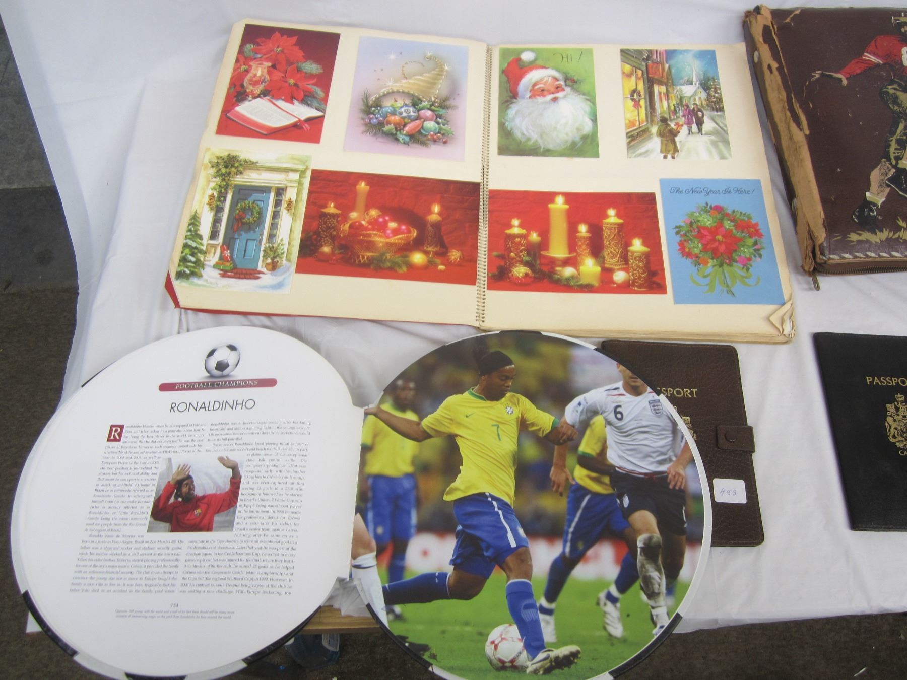 Large Lot Vintage Leather Passport Holder, Christmas Cards etc.