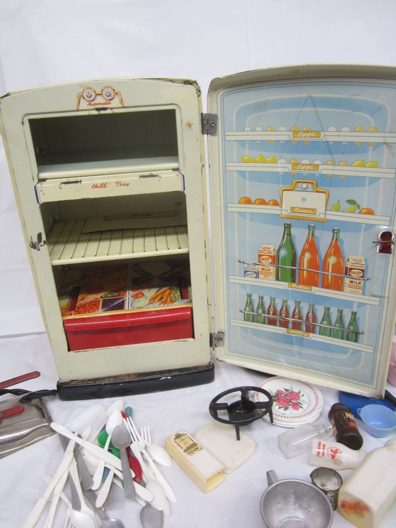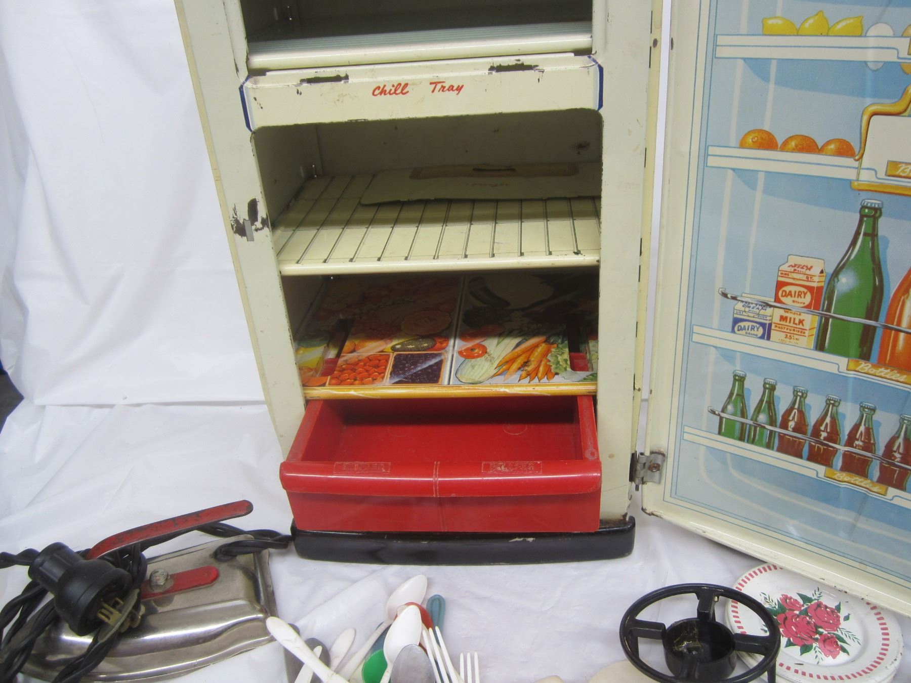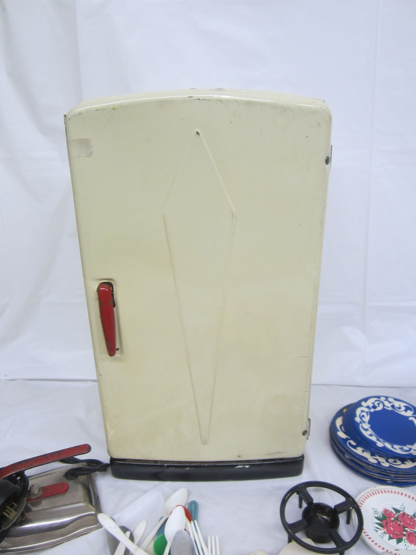 Large Lot of Girls Kitchen Toys Dishes ,Fridge ,Iron Ect.