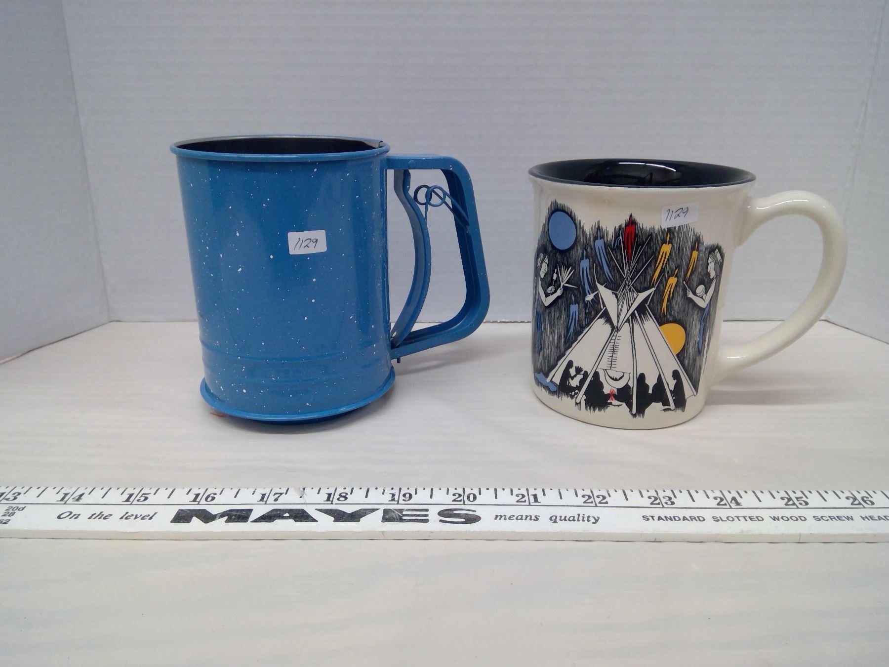 Large Native American Print Mug, Metal Mug Style Sifter for Baking