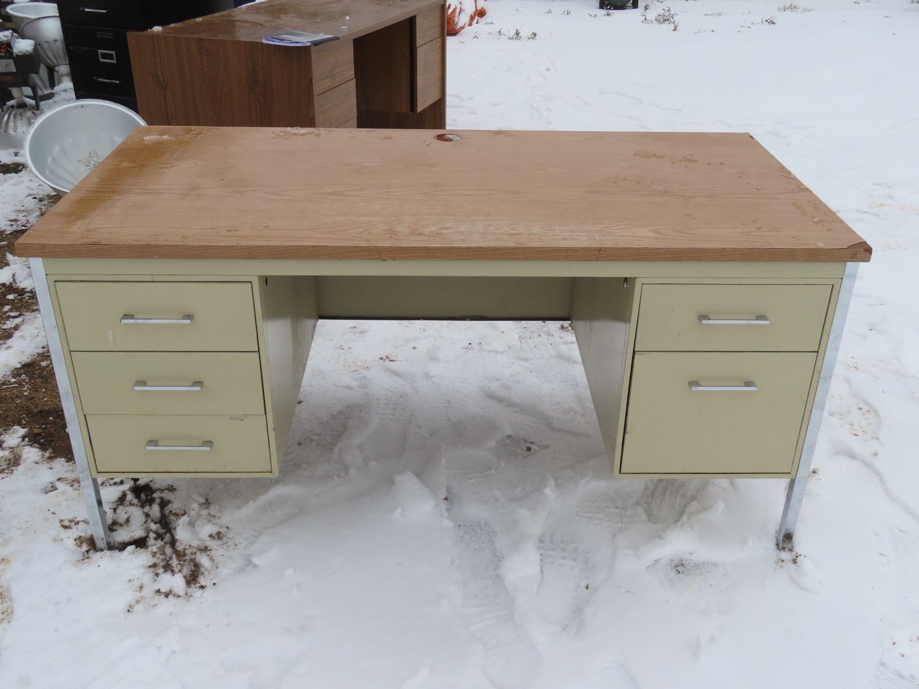 Large Office Wooden Top - Metal Drawer Desk - 6 Drawers