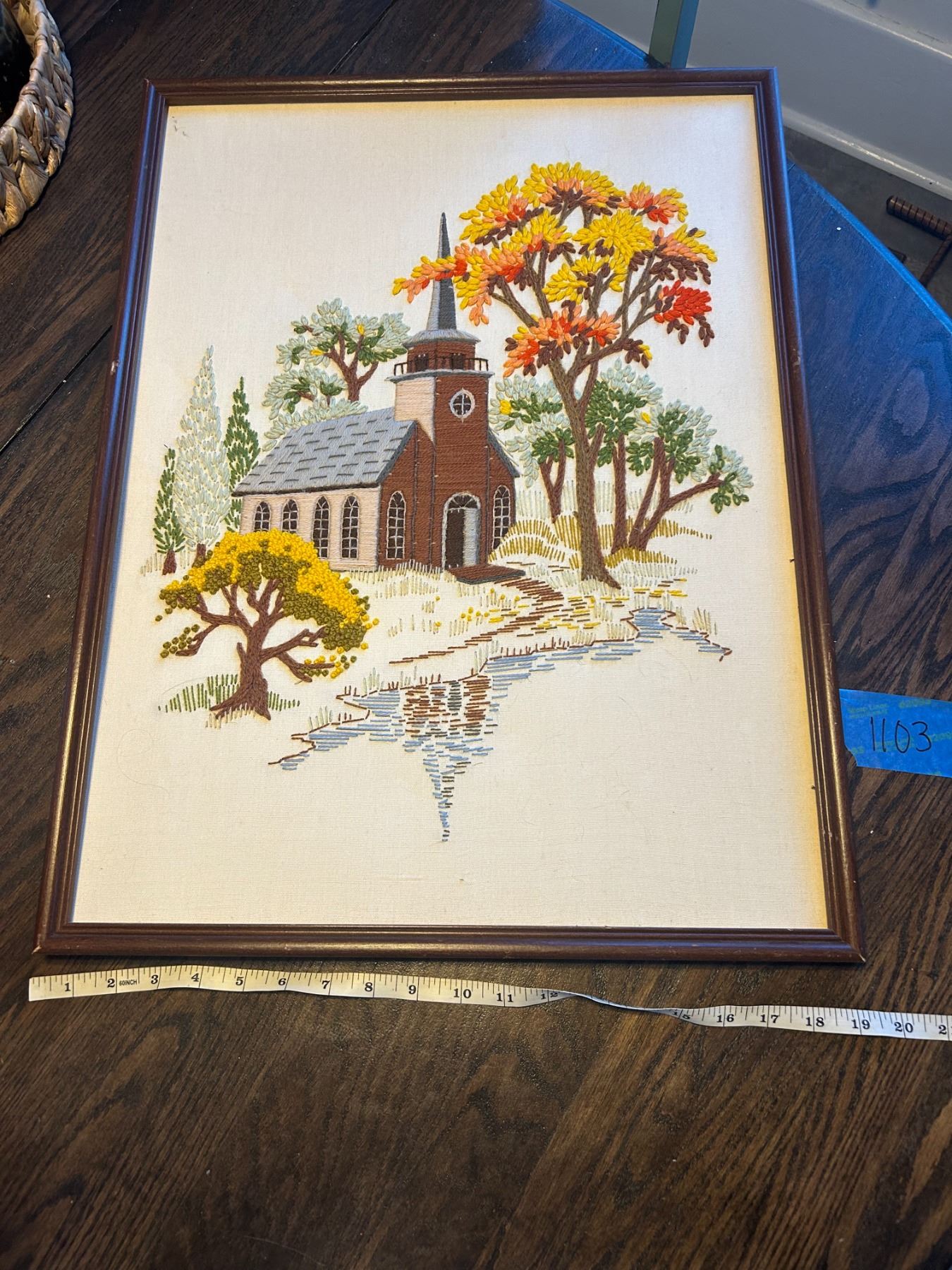 Large Vintage Crewel Wall Art 18x24