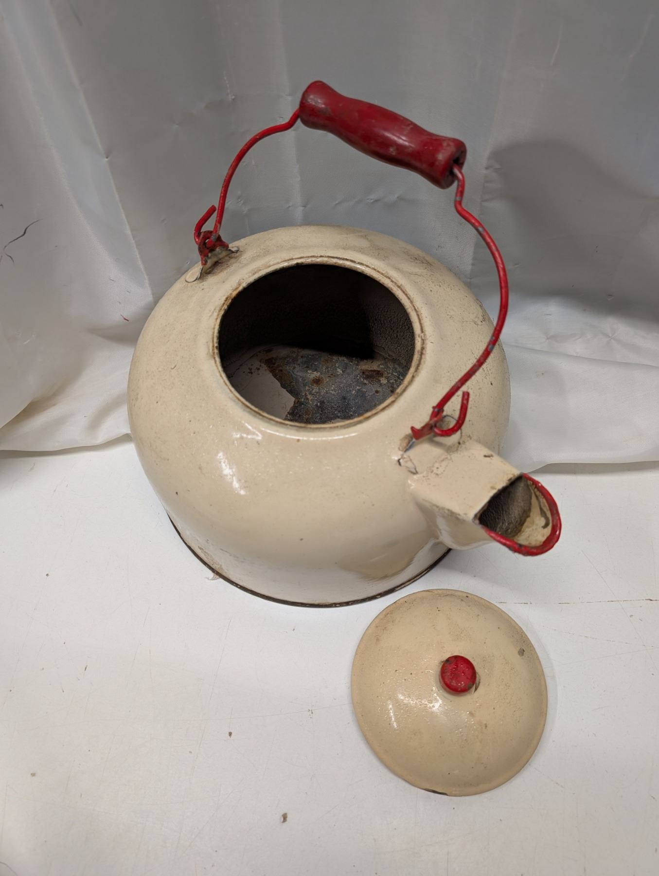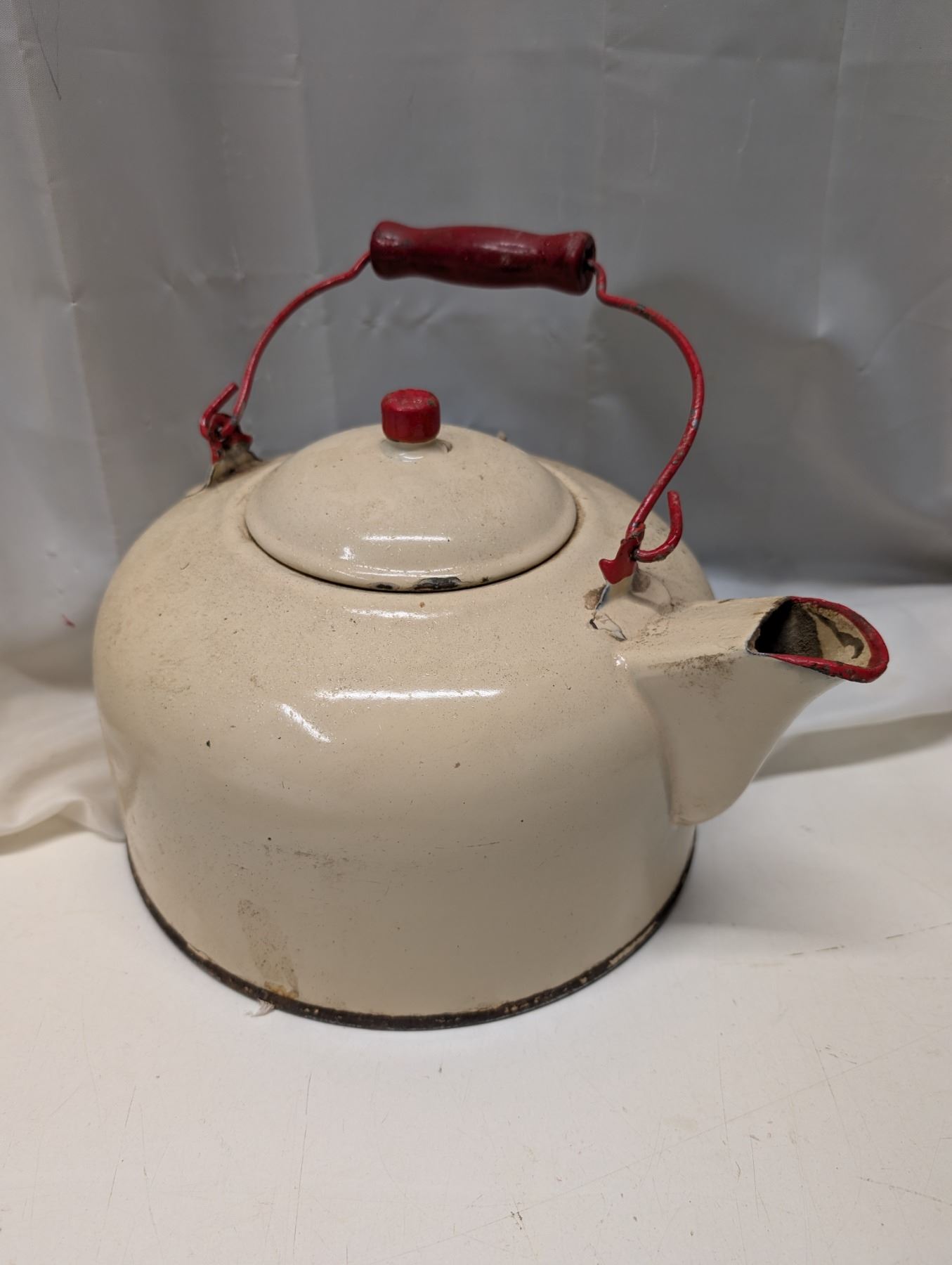 Large Vintage Enamel Ware Kettle